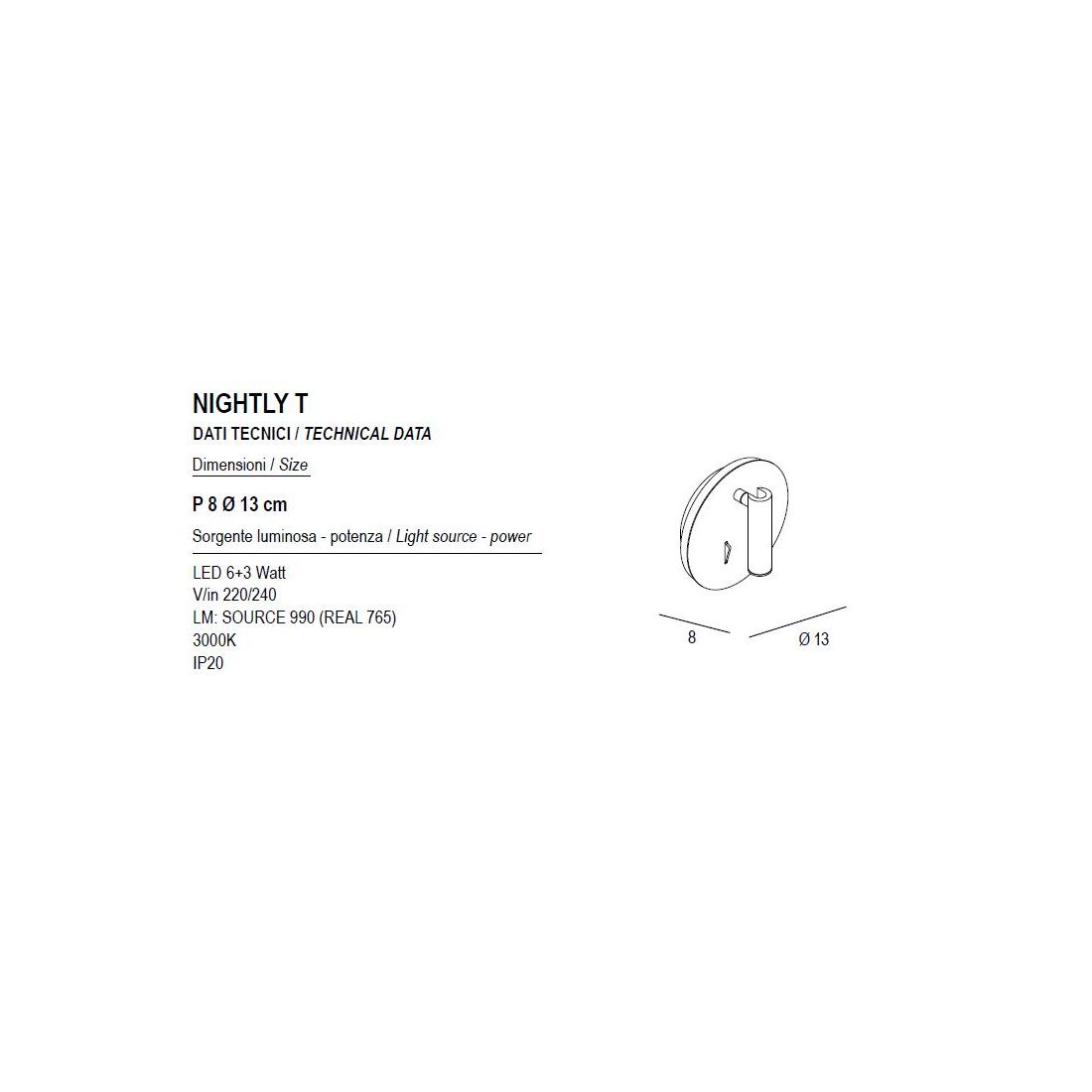 NIGHTLY APPLIQUE QUADRATA CON LUCE ORIENTABILE LED 9W LUCE 3000K DOPPIA ILLUMINAZIONE...