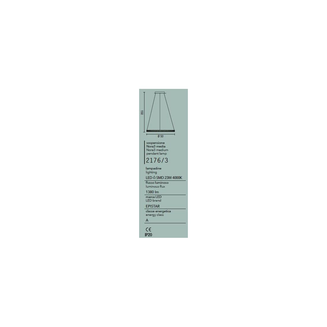 2176-3NORA3 AFFRALUX LAMPADARIO CON CRISTALLI A LED 23W 4000K DIAMETRO 50 CM