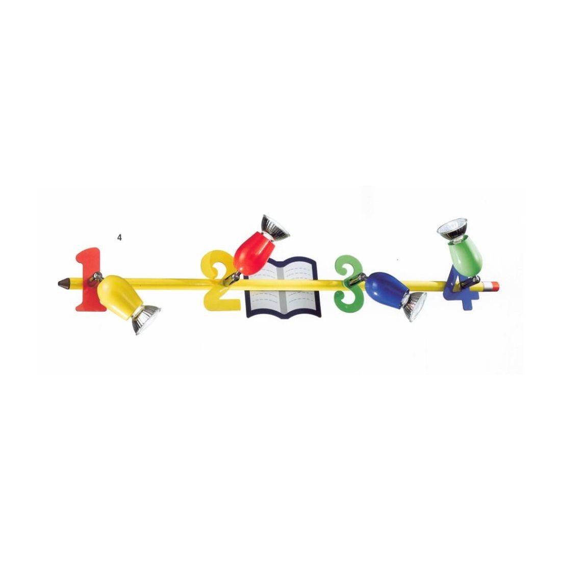 Binario con 4 spot direzionabili. Portalampade 4xGU10 max. 50W cad. 230v incluse. Struttura in metallo.