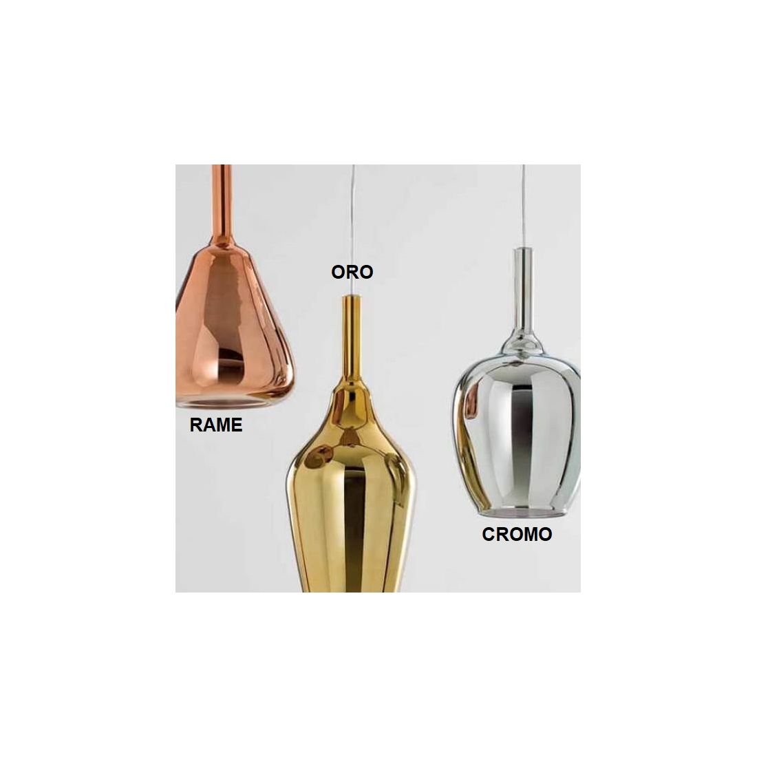 OFELIA SOSPENSIONE CON DECENTRO 3 LUCI IN VETRO COLORATO DISPONIBILE IN 8 COLORI CON...