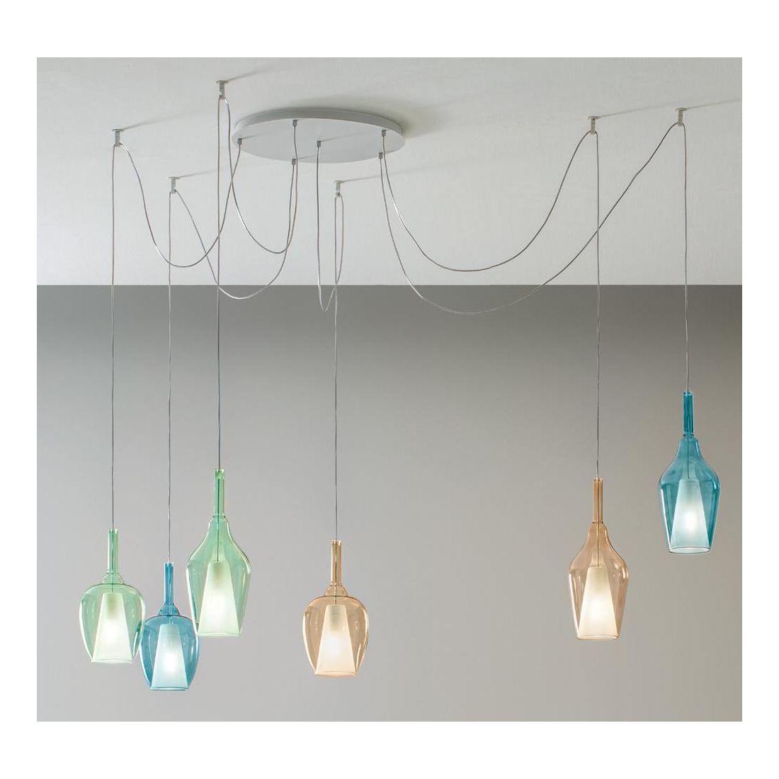 OFELIA SOSPENSIONE 6 LUCI IN VETRO COLORATO DISPONIBILE IN 8 COLORI CON LAMPADINE...