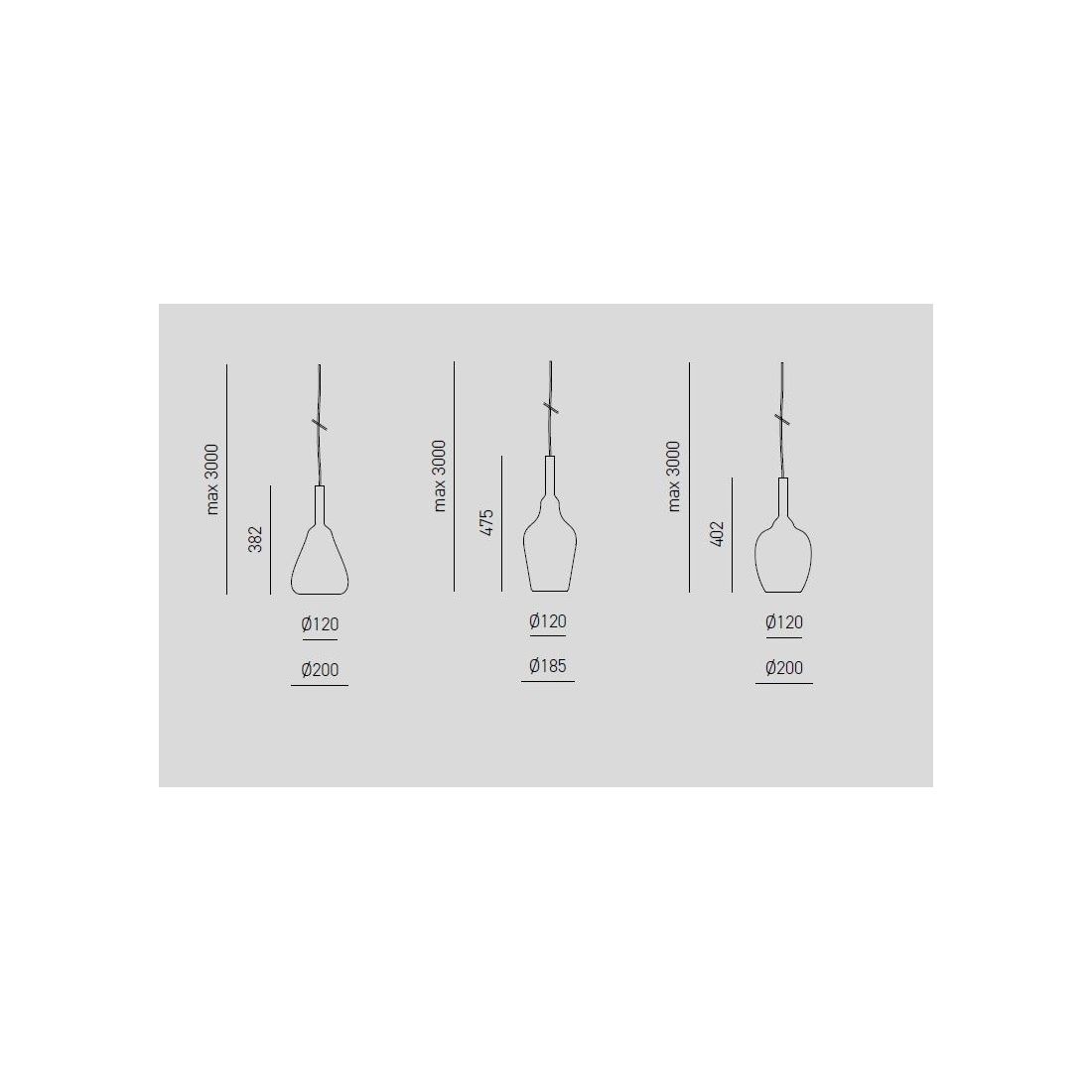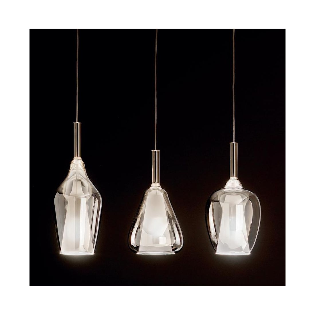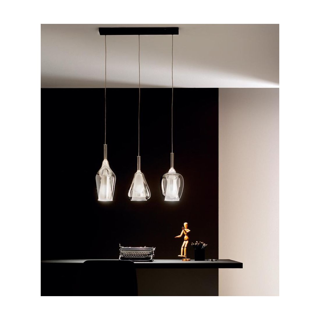 OFELIA SOSPENSIONE CON DECENTRO 3 LUCI IN VETRO COLORATO DISPONIBILE IN 8 COLORI CON...