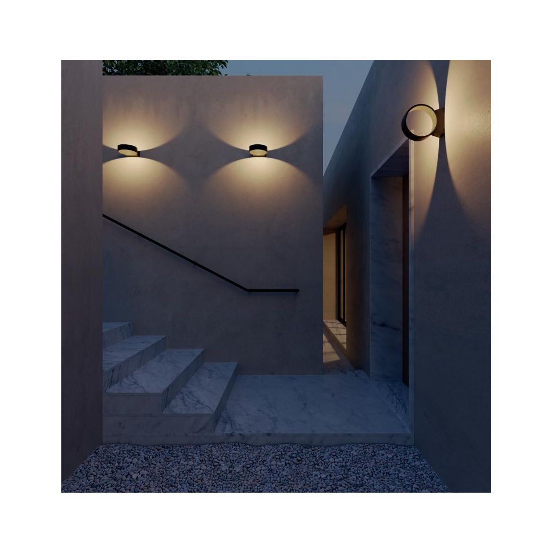 Lampada da parete dal design moderno e circolare, progettata per l'illuminazione di ambienti esterni, che si presenta con una struttura realizzata in alluminio verniciato a polveri nei colori Corten oppure Antracite (a vostra scelta) con il diffusore in acrilico trasparente che dirige il flusso luminoso in maniera indiretta generando suggestivi e distintivi fasci di luce sulle pareti, come ben visibile nelle foto delle ambientazioni. Questo effetto luminoso crea profondità e valorizza le superfici architettoniche contribuendo a un'atmosfera unica e accattivante.