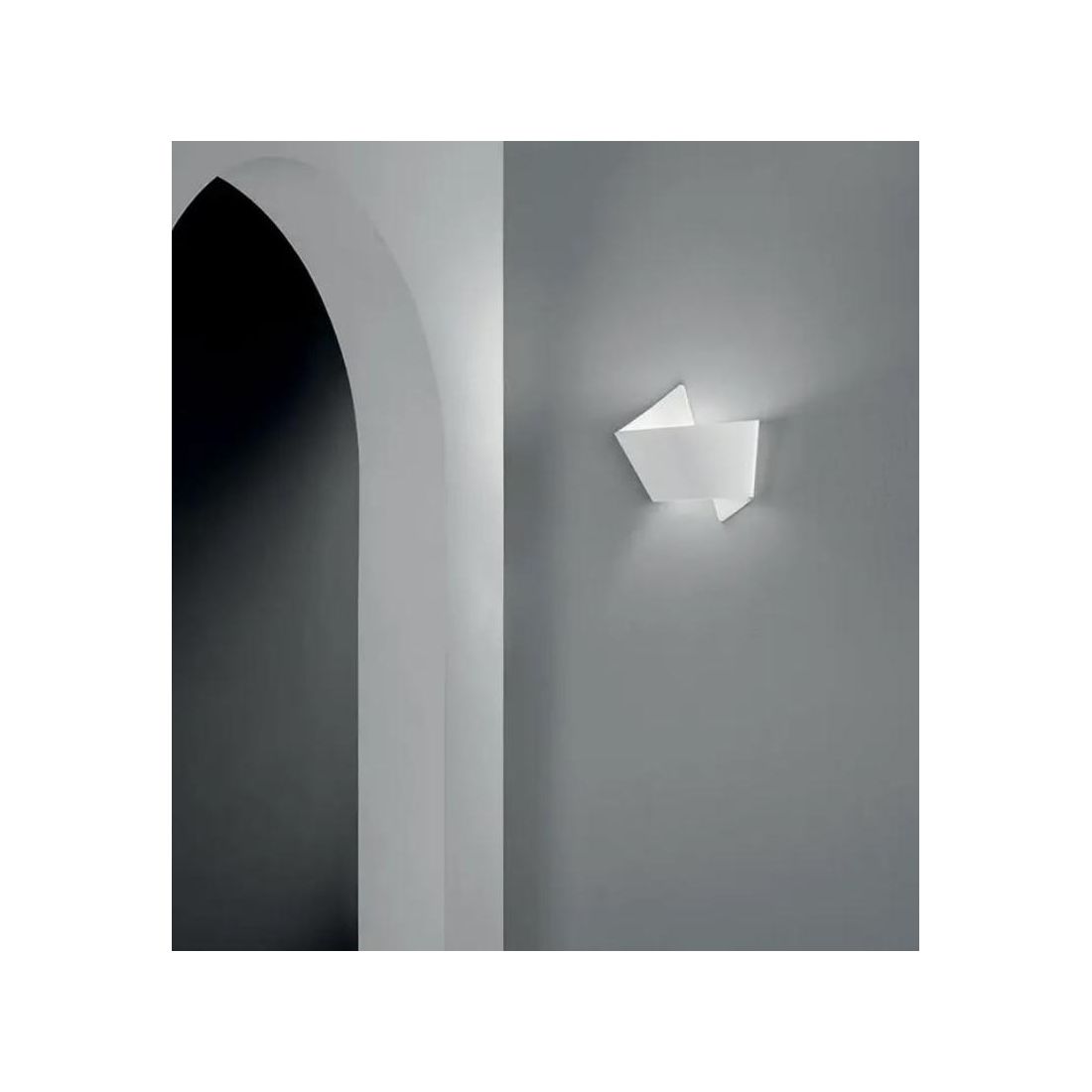 Lampada da parete realizzata in gesso bianco verniciabile che permette di personalizzarne il colore con una semplice mano di pittura adattandola perfettamente al contesto decorativo desiderato. Questo prodotto offre un design pulito e moderno ispirato all'arte degli origami infatti la sua forma evocativa richiama l'eleganza di questo antico metodo di piegatura della carta aggiungendo creatività all'illuminazione.