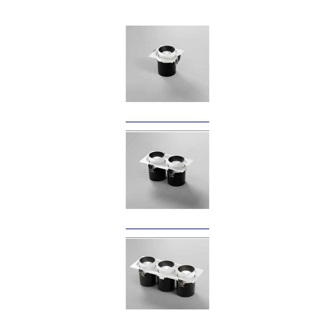 - Faretto a 3 luci: misure cm 34.6x13 - altezza cm 10.5 - diametro faretto cm 8.2 cad. - misure foro cm 33.5x11.6x pr. 11;