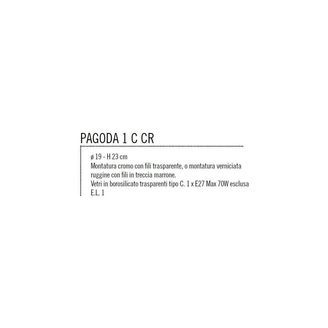 PAGODA 5 LUCI PIATTO CROMO LUCIDO O RUGGINE CON FILO TRECCIA VETRI TRASPARENTI