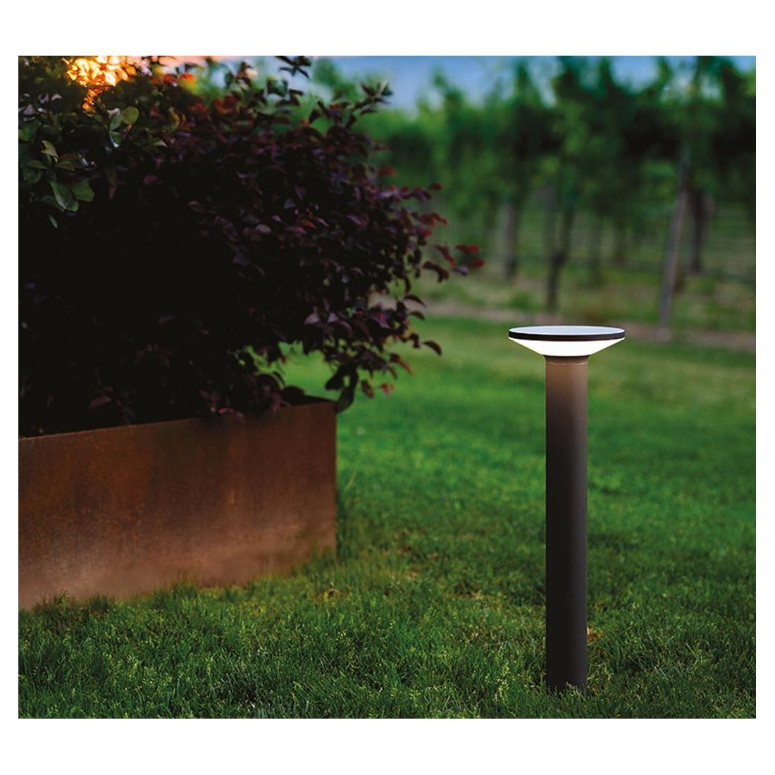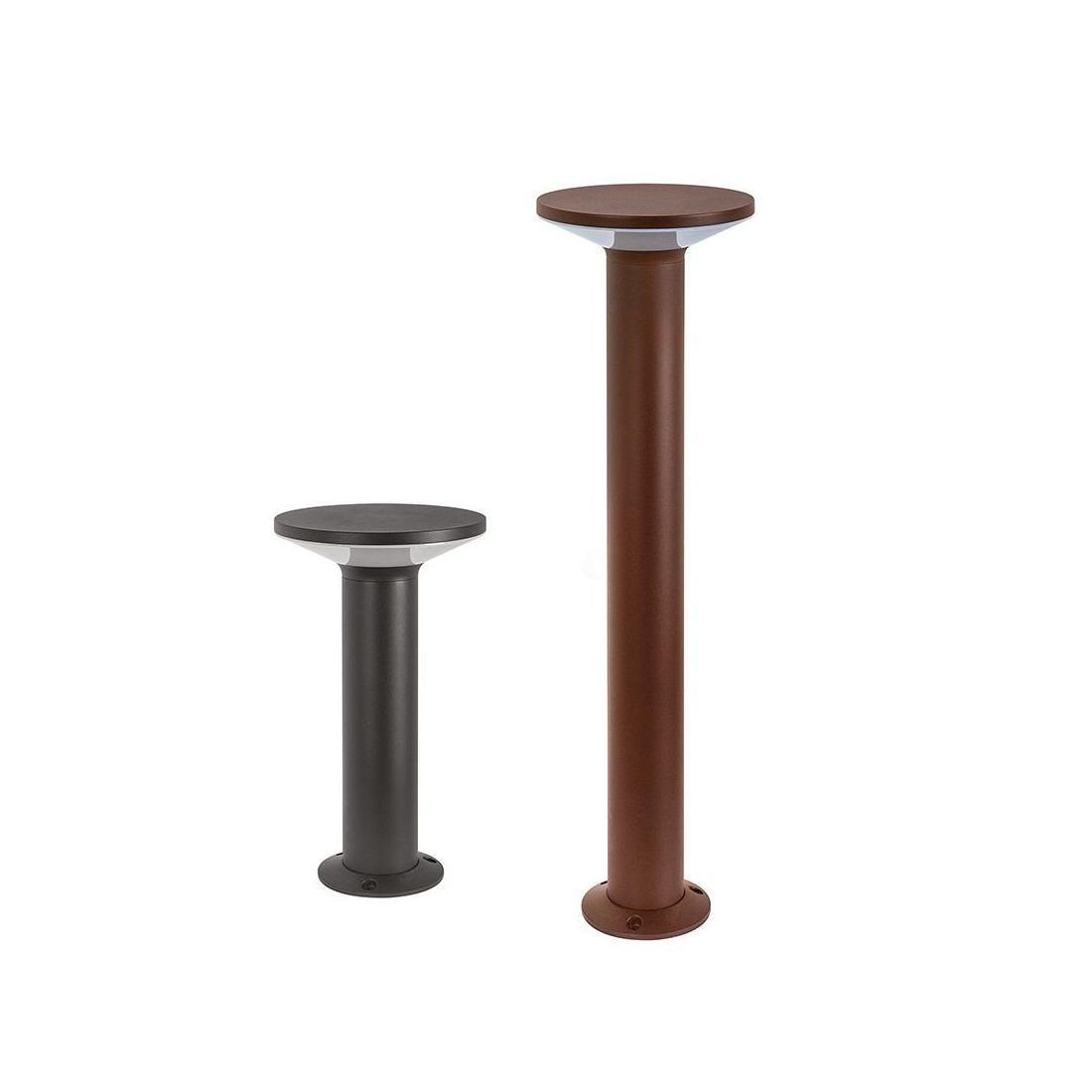 Il palo è disponibile in due altezze: 30 cm, perfetta per delineare i bordi di aiuole o piccoli sentieri con discrezione, oppure 60 cm, ottima per l'illuminazione diffusa di aree conviviali e zone di passaggio principali. Entrambe le versioni sono dotate di sorgente luminosa a Led da 12w con possibilità di scegliere il colore della luce tra una luce bianca calda 3000k oppure una luce bianca naturale 4000k.