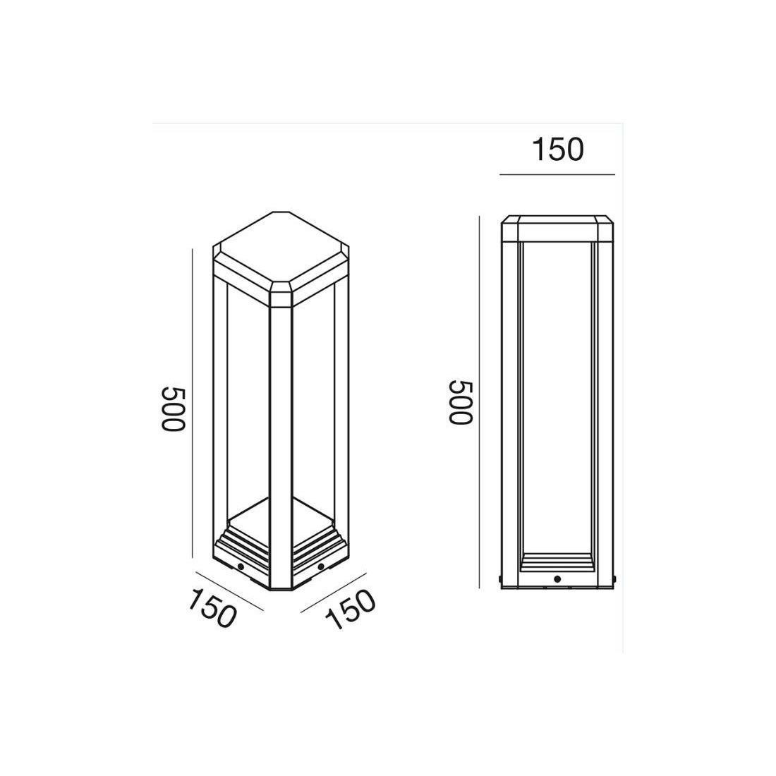Paletto con un altezza di cm 50, con un design moderno, a luce indiretta verso il basso, ideale per ambienti esterni o giardini, che viene realizzato con tecnologia LED 13W con luce bianca naturale 4000K, che illumina in modo indiretto verso il basso garantendo al tempo stesso un grande risparmio energetico; è un lampione da esterno dal design minimalista che emette un particolare fascio di luce verso il basso con ombre sagomate e taglienti.
