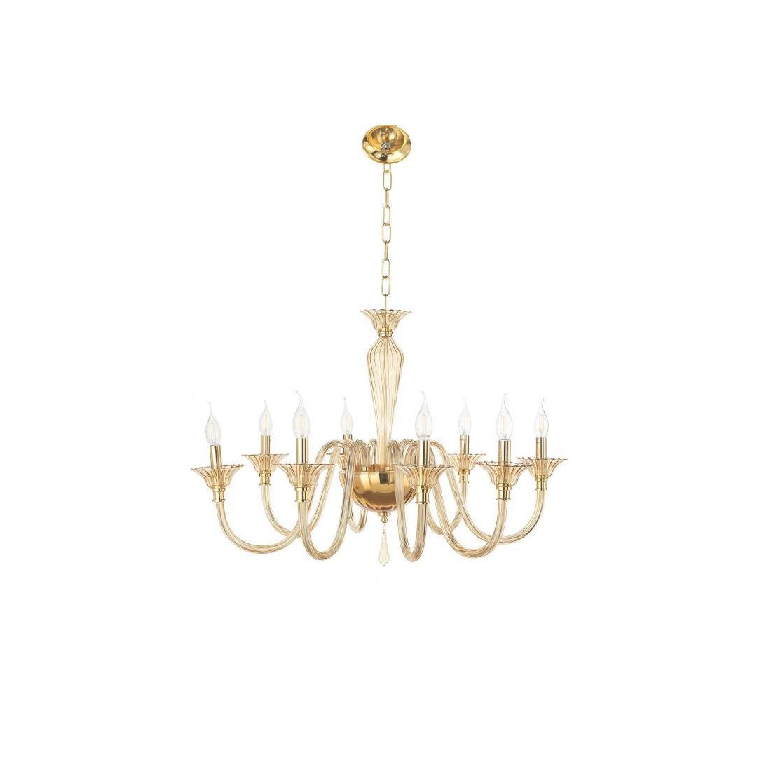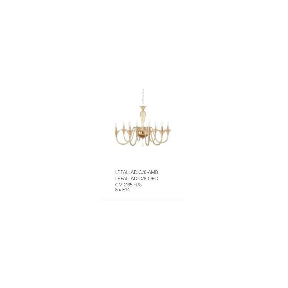 PALLADIO 8 LP.PALLADIO LAMPADARIO CLASSICO A 8 LUCI IN VETRO LAVORATO A MANO COLORE AMBRA DI ONDALUCE