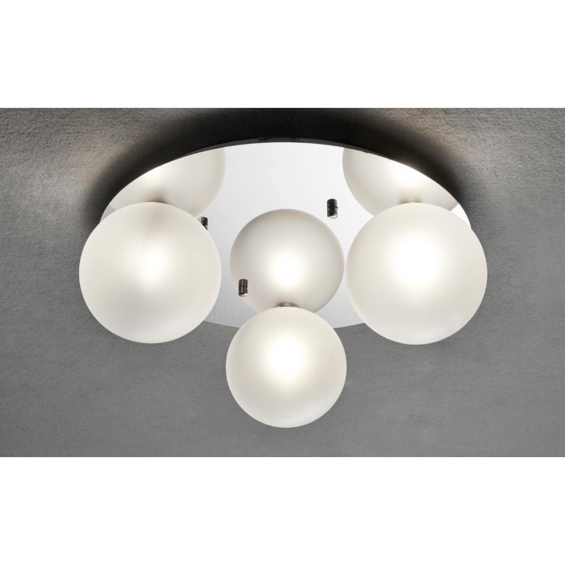 PALLINA PLAFONIERA D60 ROTONDA 5 LUCI IN METALLO CON SFERE IN VETRO TRASPARENTE O SATINATO