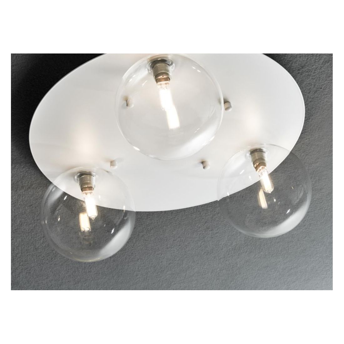PALLINA PLAFONIERA 3 LUCI IN METALLO 3 COLORI CON SFERE IN VETRO TRASPARENTE O SATINATO