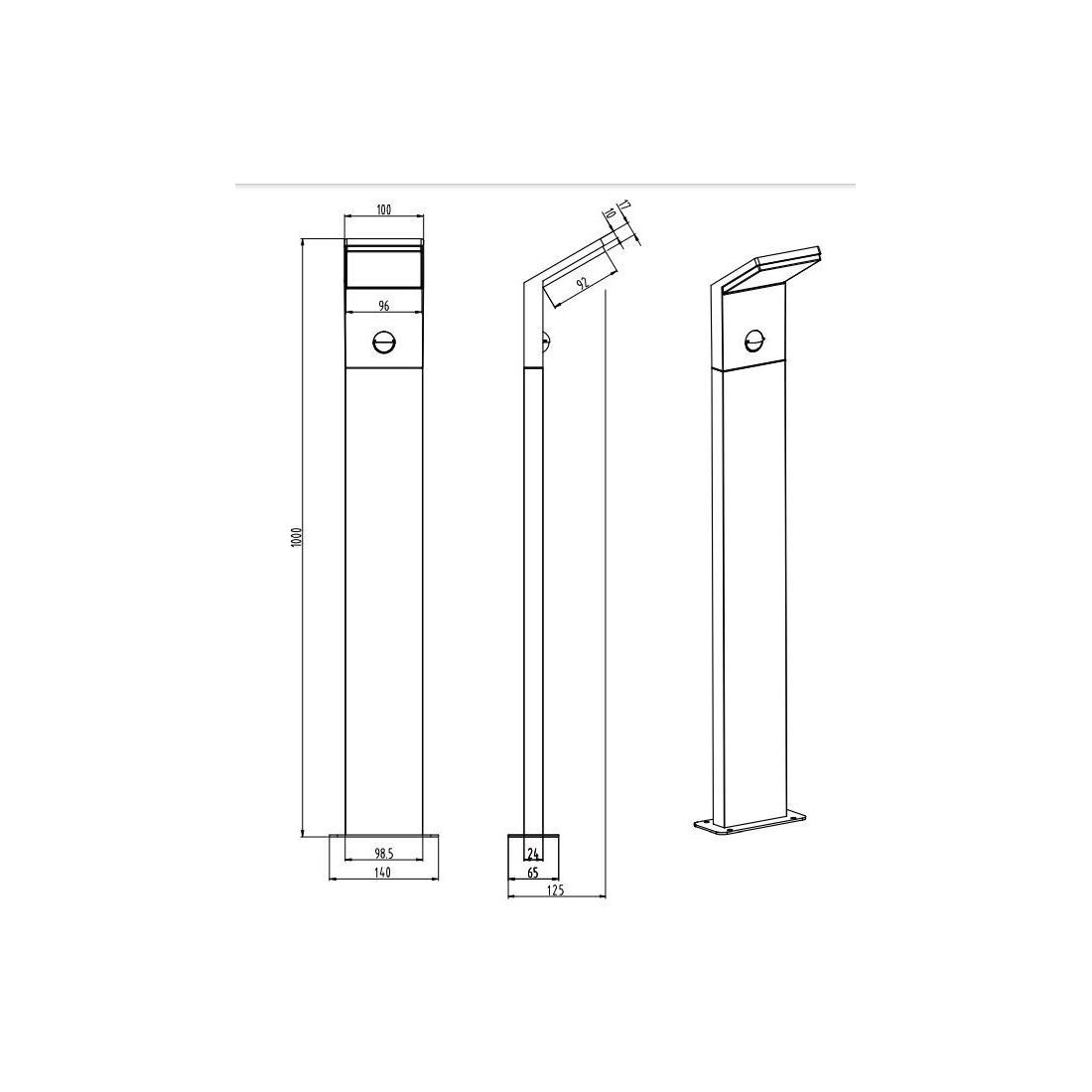 PEARL PALO DA ESTERNO H100 ANTRACITE MODERNO LED 9W IP54 SQUADRATO