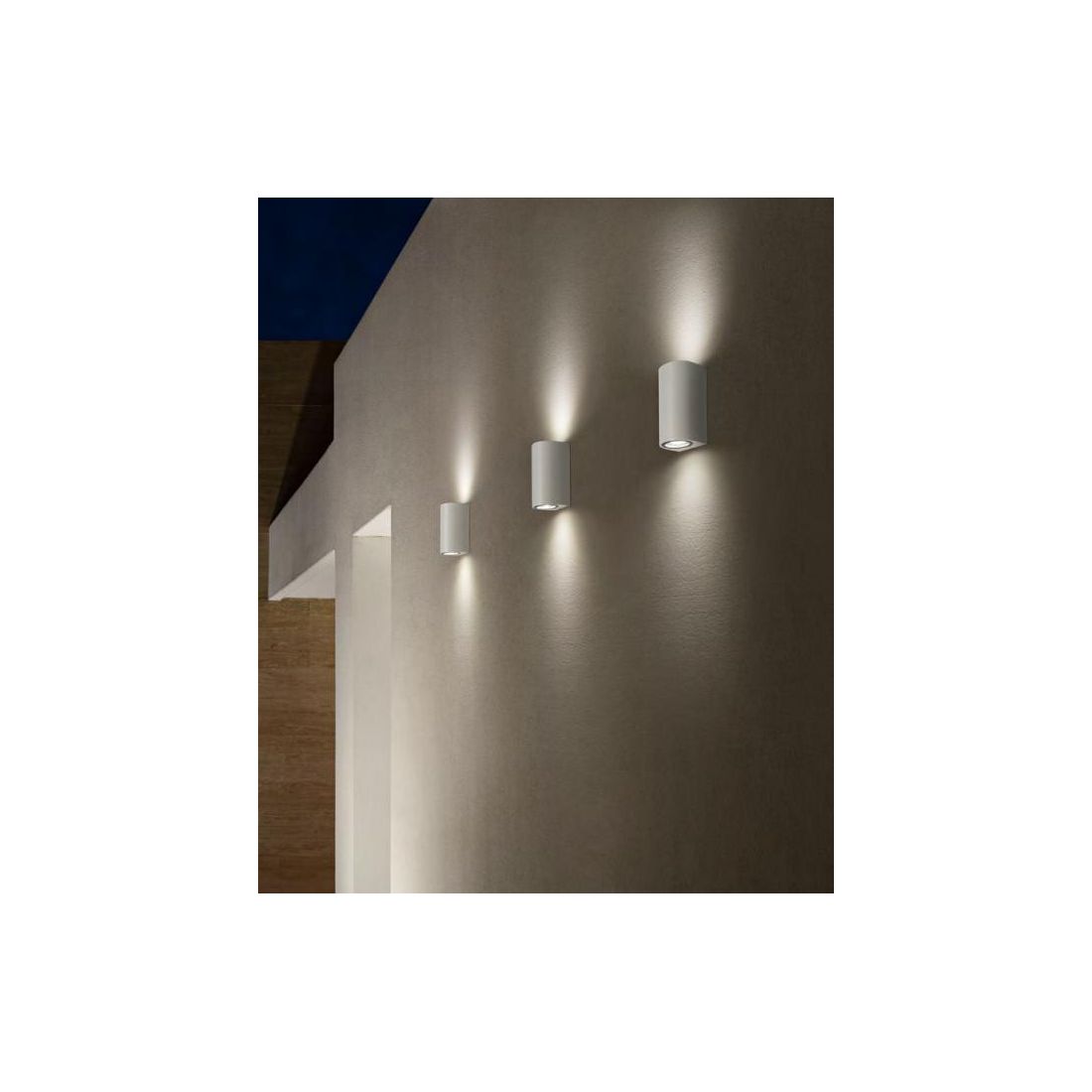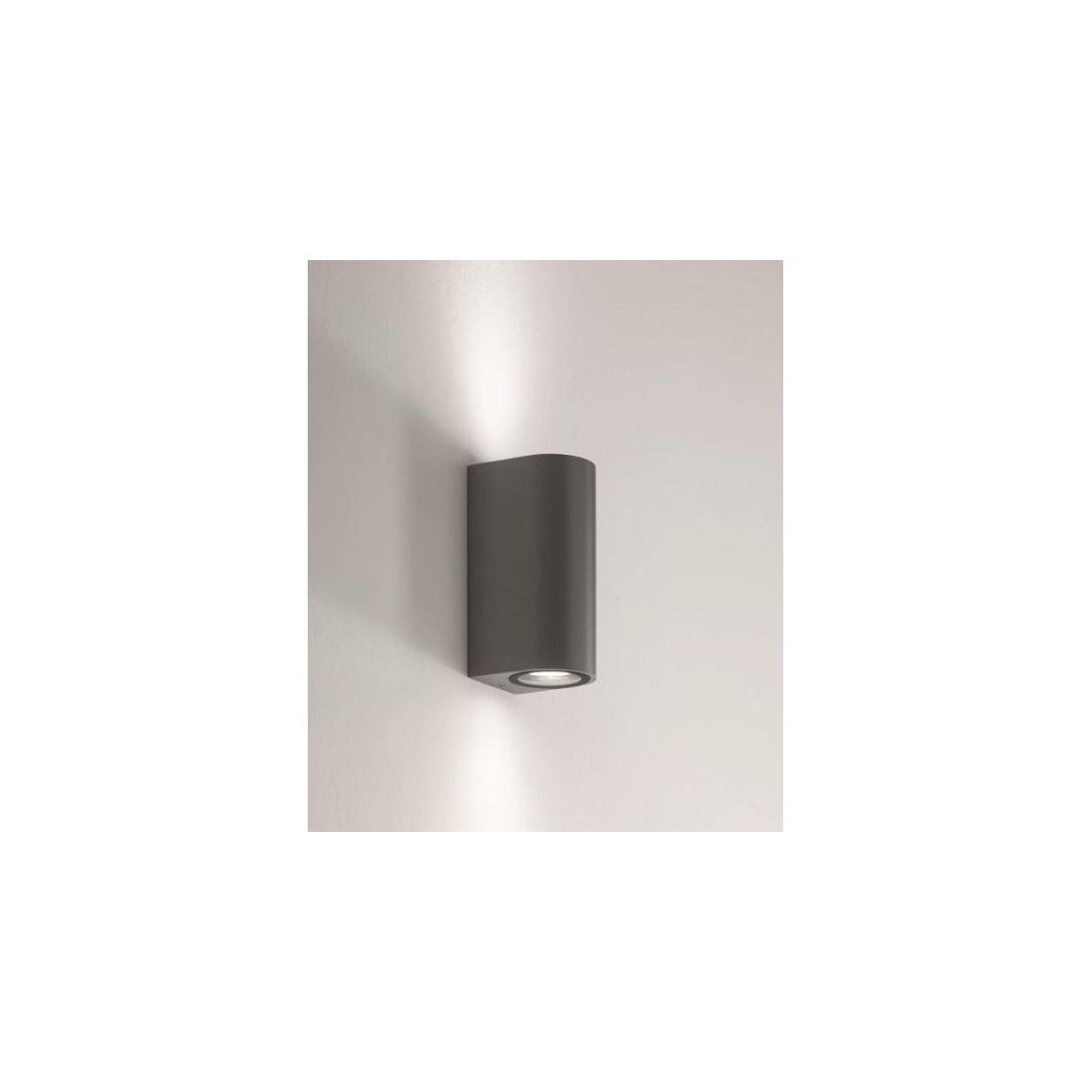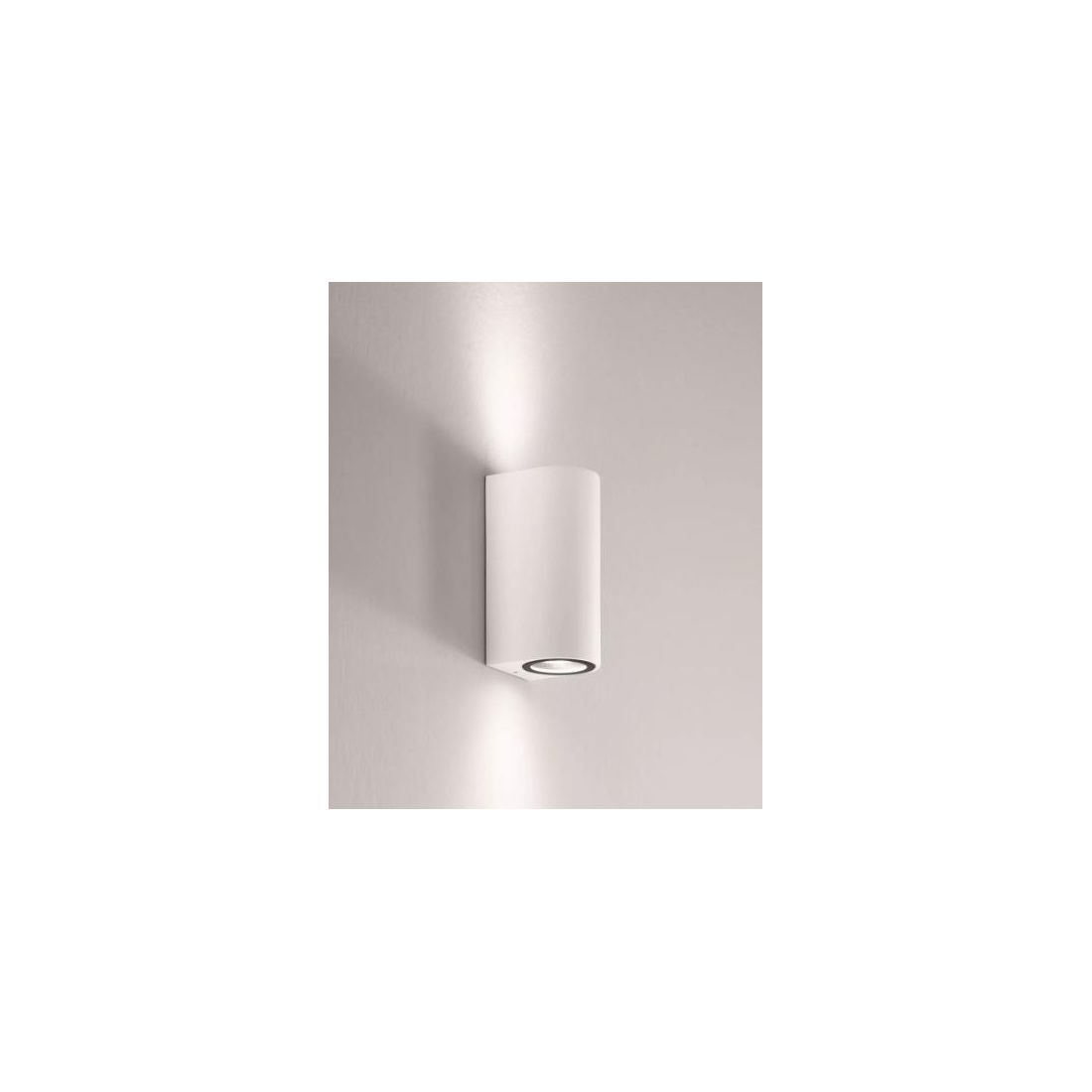 Pianosa di Isyluce un applique per esterno a forma di cilindro in alluminio verniciato di bianco sabbiato oppure di antracite sabbiato. E'una lampada da parete con illuminazione up and down una luce di accento sulla parete verso l'alto e verso il basso.
