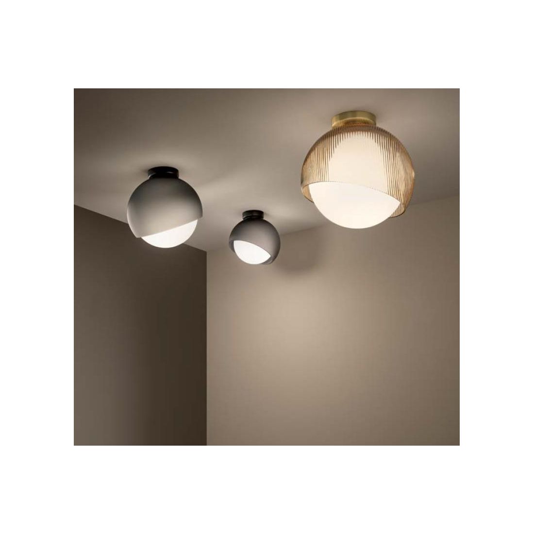 La lampada è disponibile in 2 dimensioni per garantire la massima flessibilità di installazione e composizione: con un diametro di 22 cm oppure diametro di 30 cm; questa varietà dimensionale permette di creare affascinanti installazioni multiple o di selezionare il punto luce perfetto per spazi più mirati. Perfetta per l'illuminazione di corridoi, ingressi, salotti, cucine, camere da letto, uffici, negozi, bar, ristoranti e sale d'attesa.