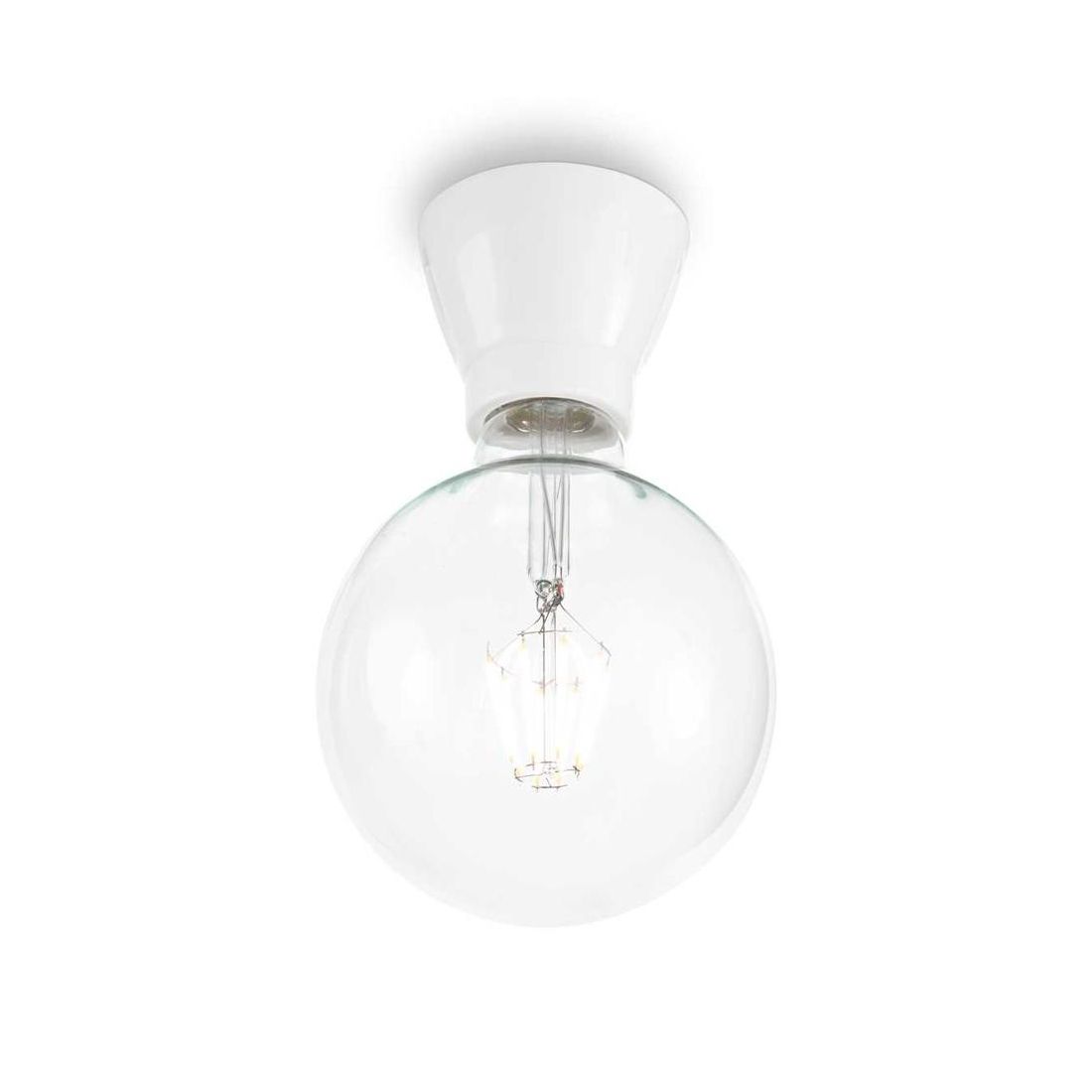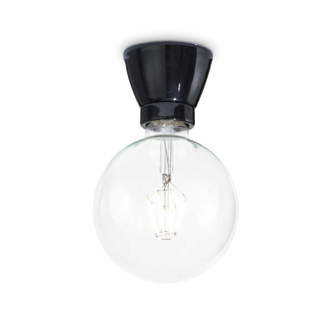 Plafoniera essenzial in ceramica bianco smalto o nero opaco. Il portalampade è con attacco E27 e si può montare lampadine alogene fino a 60w oppure lampadine a Led di ultima generazione senza limitazione di wattaggio in quanto lampadine che non producano calore.
