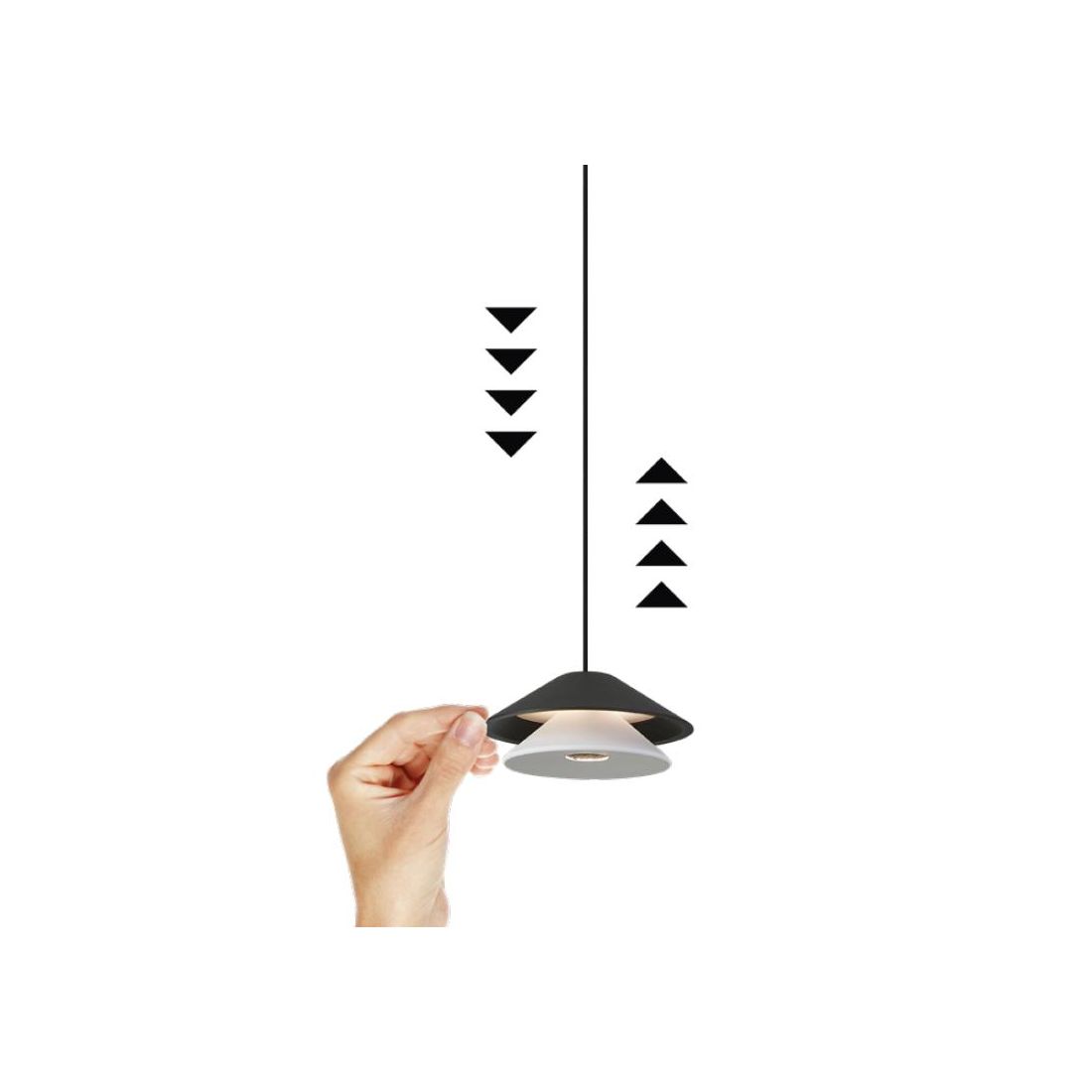 Una delle funzionalità più apprezzate di questa sospensione è il meccanismo saliscendi integrato che consente di regolare la lunghezza del cavo con un semplice movimento manuale. Questo consente di direzionare la luce sul piano di lavoro o sul tavolo, adattare l'altezza per creare un effetto luminoso più soffuso, personalizzare la disposizione in funzione di esigenze estetiche o pratiche.