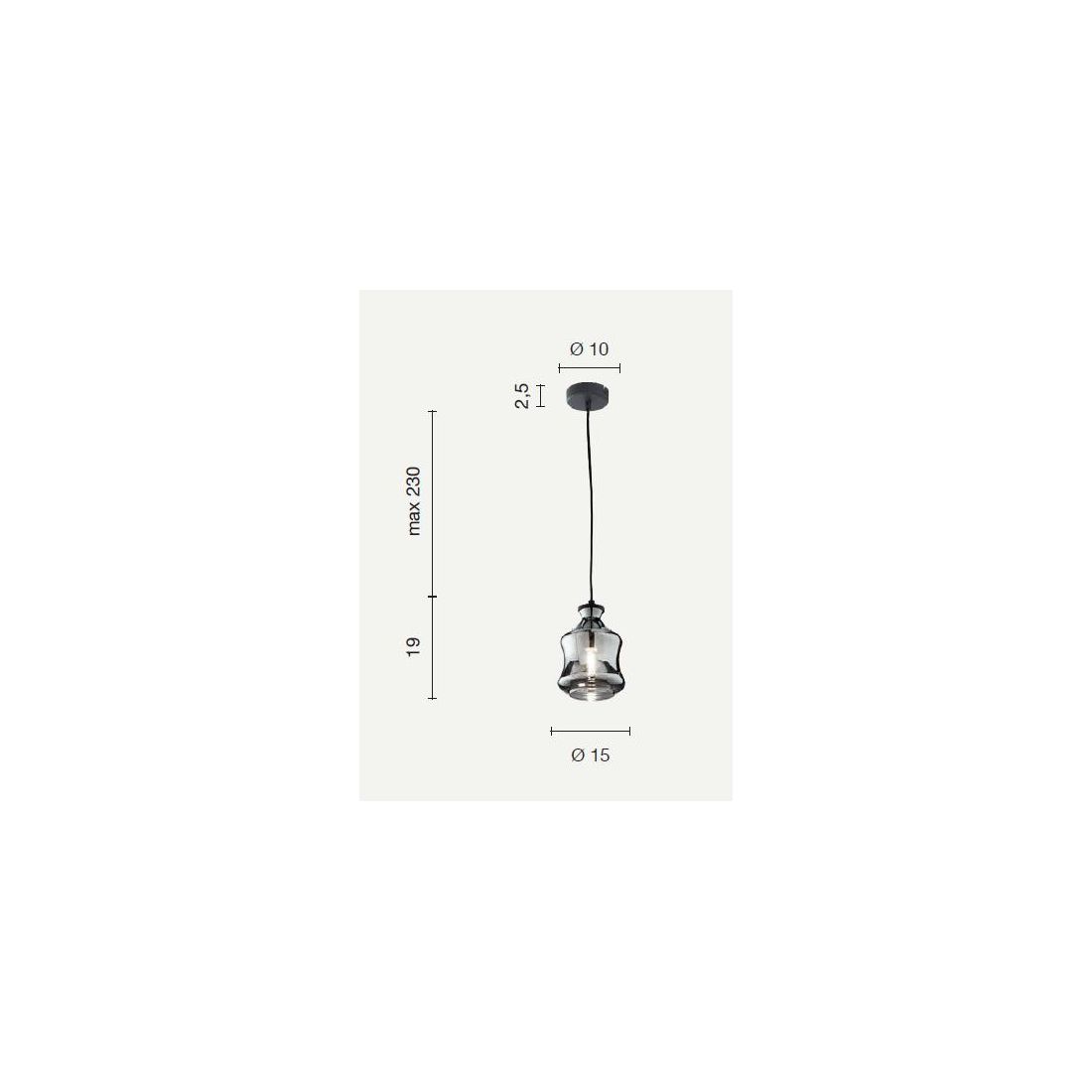 PIN SOSPENSIONE SINGOLA STILE VINTAGE IN VETRO SOFFIATO FUME O AMBRA D18 CM ATTACCO E14