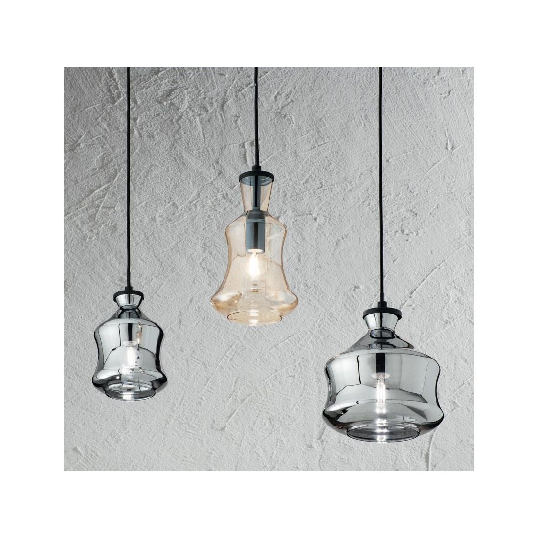PIN SOSPENSIONE CON DECENTRO 3 DIFFUSORI IN VETRO SOFFIATO FUME O AMBRA STILE VINTAGE