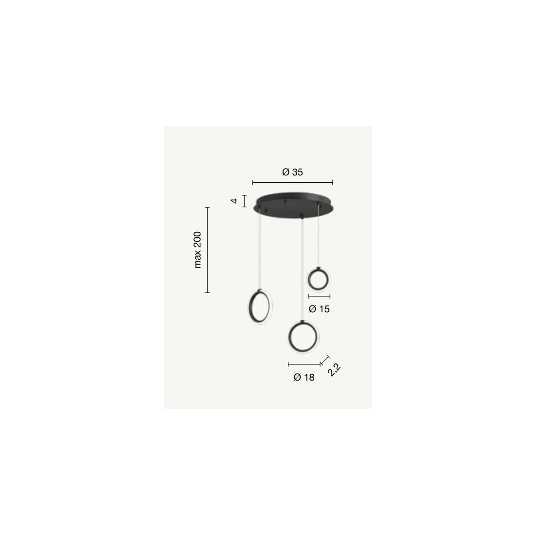 PINTA SOSPENSIONE 8 LUCI IN METALLO NERO O ORO CON DIFFUSORI A CERCHIO LED 68W LUCE...