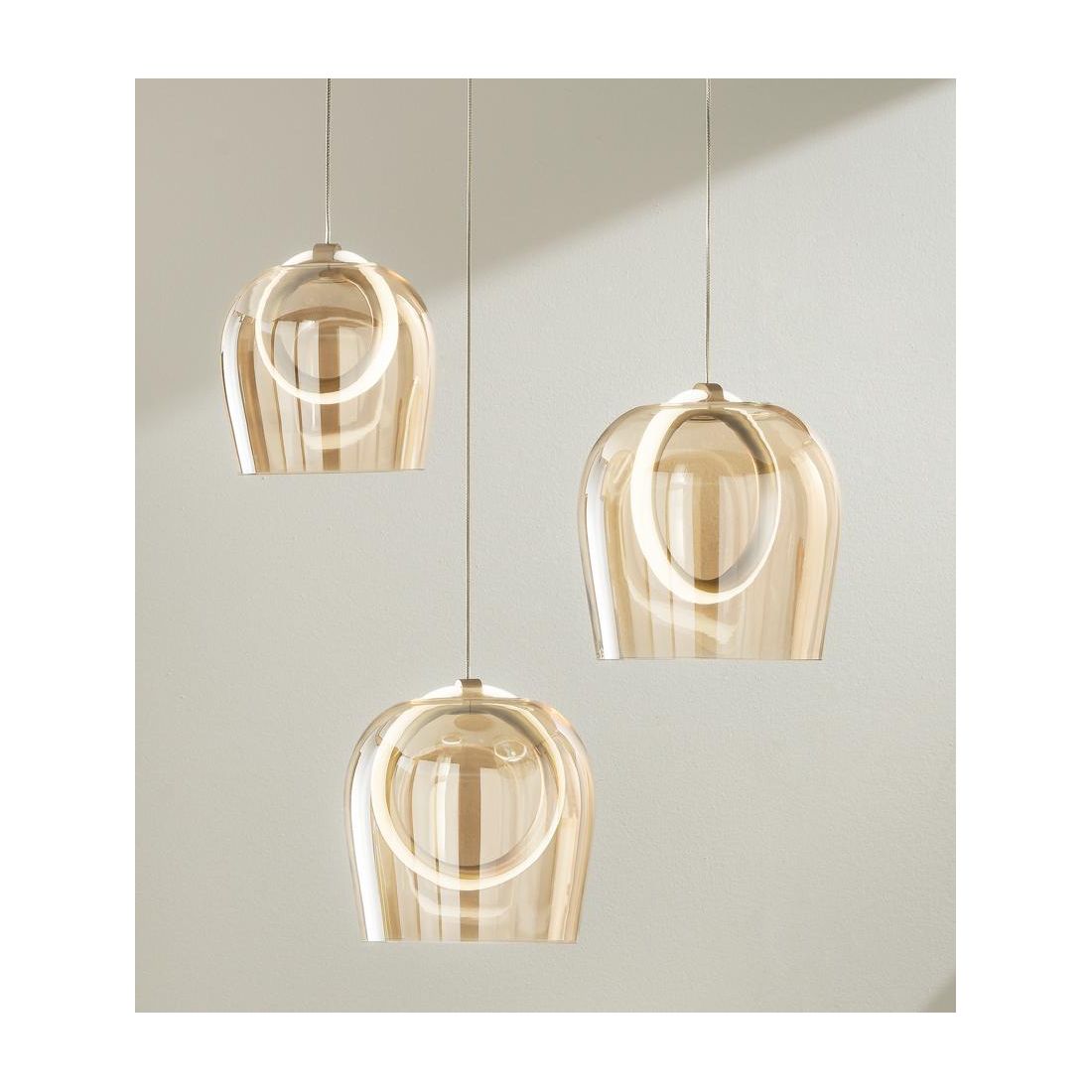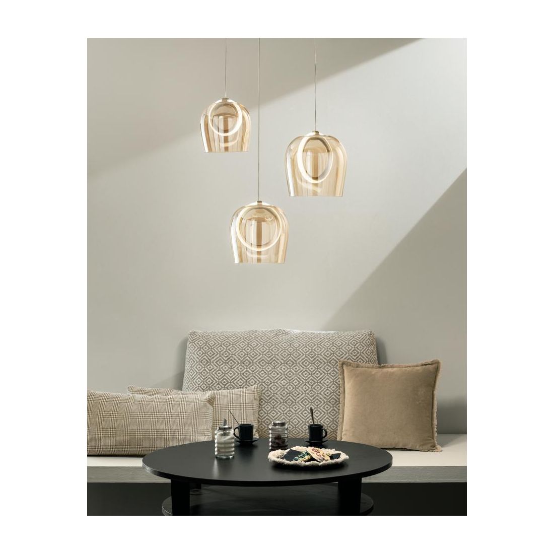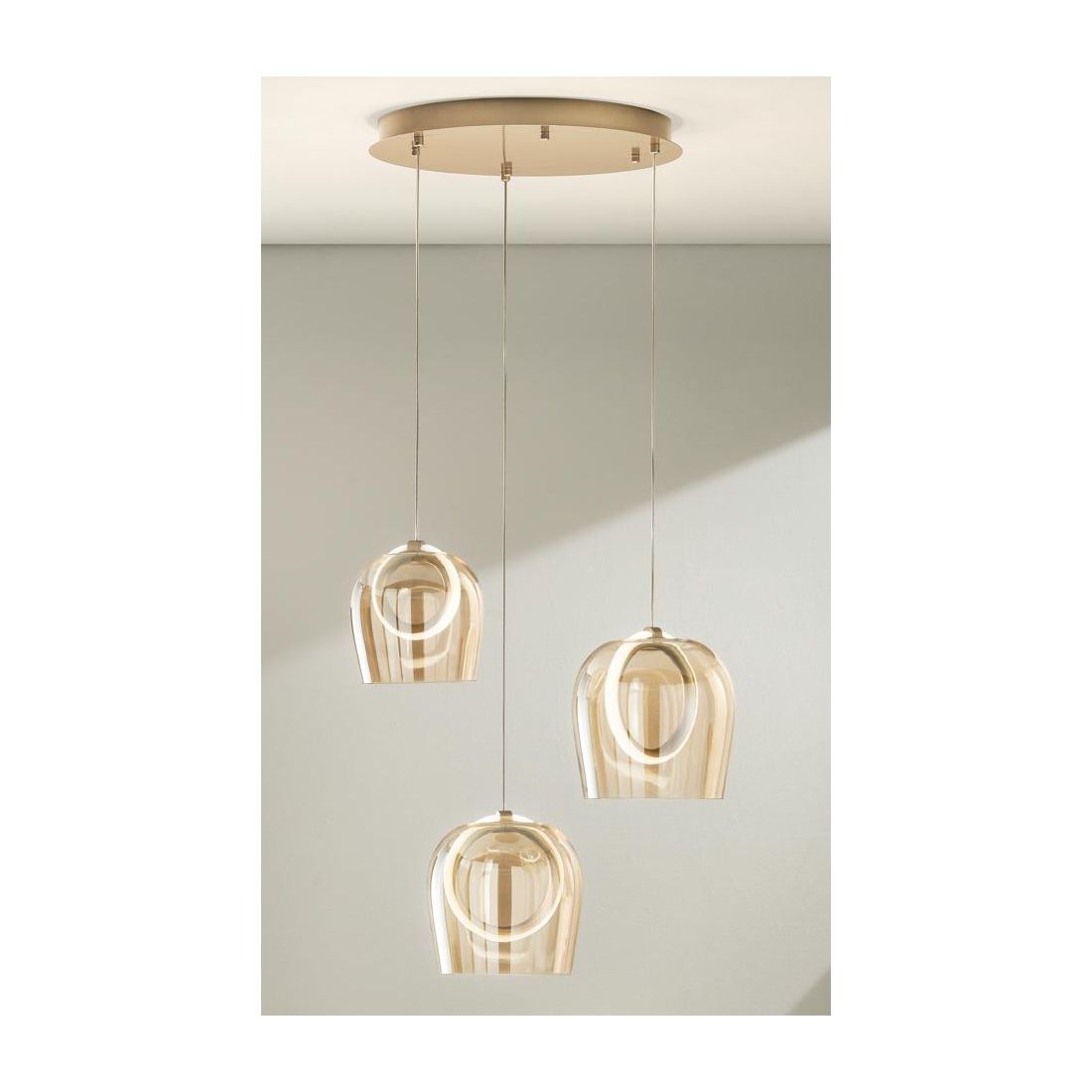 PINTA SOSPENSIONE 3 LUCI IN METALLO ORO CON DIFFUSORI IN VETRO COLORATO LED 25W LUCE...