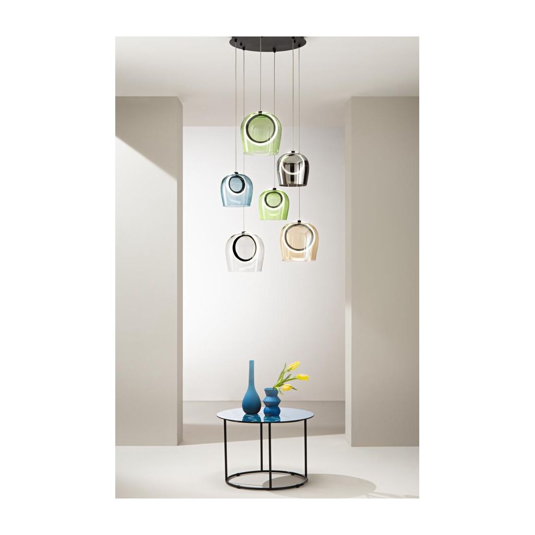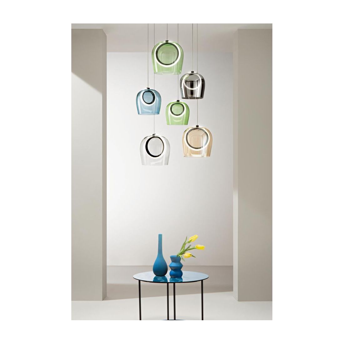PINTA SOSPENSIONE 3 LUCI IN METALLO ORO CON DIFFUSORI IN VETRO COLORATO LED 25W LUCE...