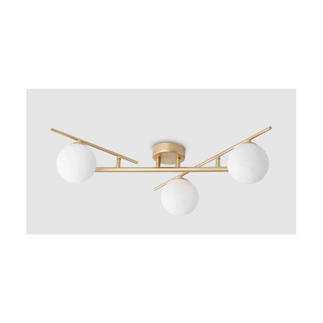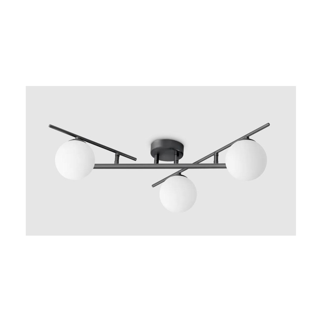 Plafoniera con 3 luci, dal design moderno, caratterizzato da una struttura dinamica, realizzata in metallo verniciato nei colori Bianco, Nero oppure Oro (a vostra scelta), che non si limita a illuminare ma arreda lo spazio con una presenza scenica discreta ed elegante. I diffusori in vetro soffiato acidato garantiscono una propagazione della luce morbida e omogenea eliminando i fastidiosi riflessi diretti. Il punto di forza risiede nei suoi bracci posizionabili che permettono di orientare la luce e modificare la sagoma della plafoniera a seconda delle esigenze estetiche.