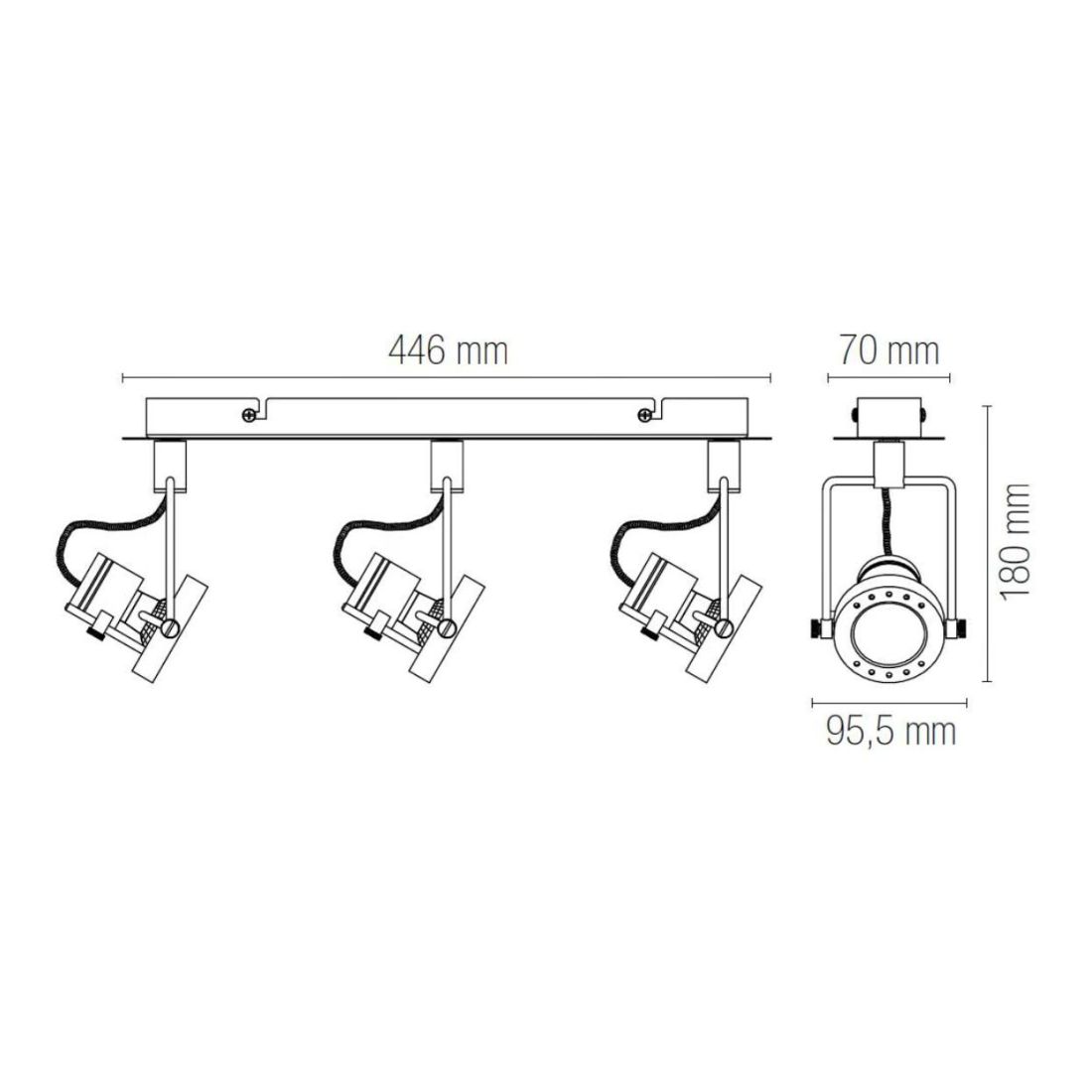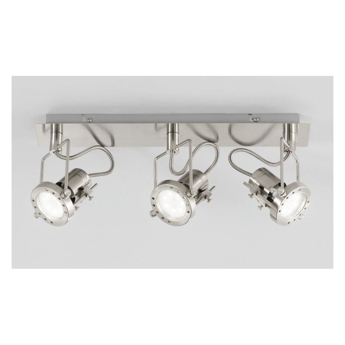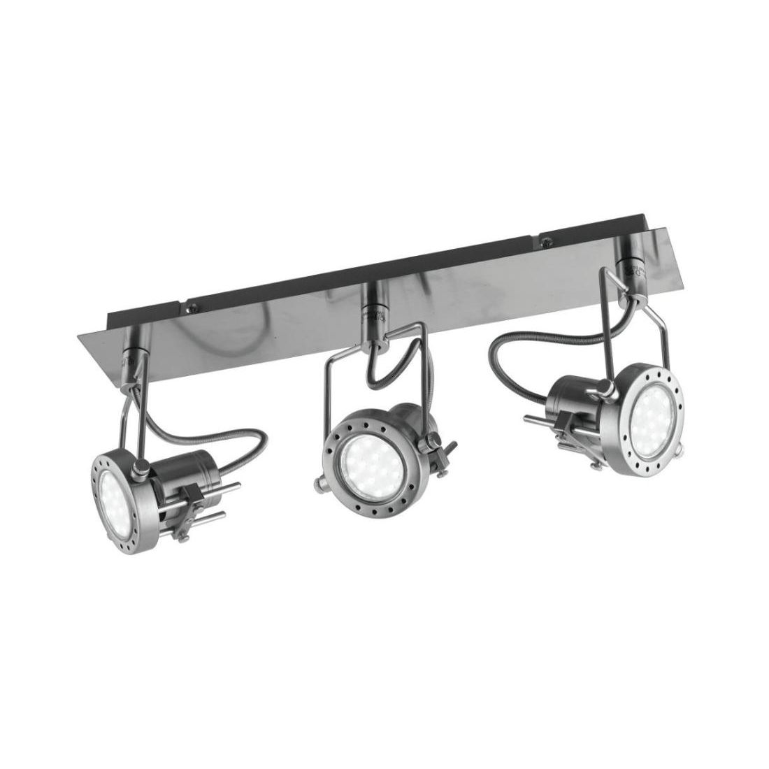 Lampada da soffitto oppure da parete, versatile e con design moderno, dotata di 3 faretti orientabili che consentono di direzionare la luce esattamente dove serve. È composta di base rettangolare, lunga cm 44, realizzata in metallo con una sofisticata finitura in Nichel spazzolato e la sua struttura rende possibile sia un’illuminazione mirata su punti specifici della stanza sia una distribuzione della luce omogenea per un’illuminazione d’insieme impeccabile.