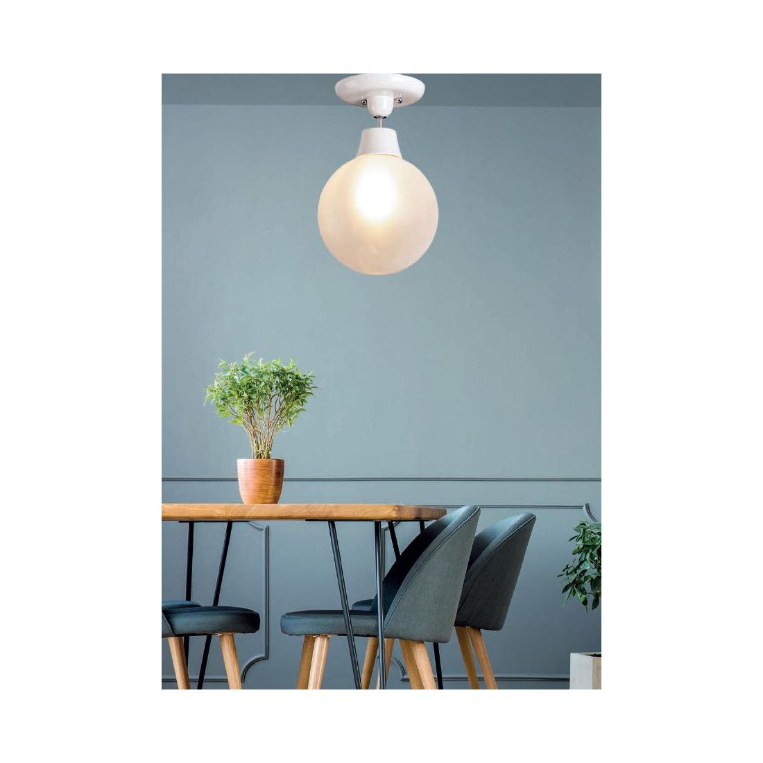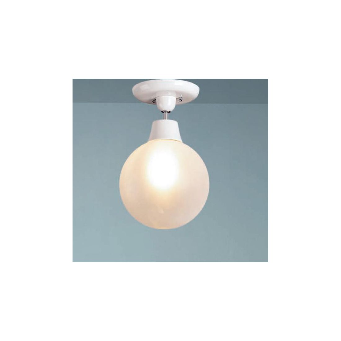Plafoniera semplice, dallo stile rustici, che si presenta con la struttura realizzata in ceramica Bianca e con il diffusore a sfera in vetro Pyrex satinato bianco del diametro di 30 cm che assicura una diffusione della luce morbida e omogenea, eliminando l'abbagliamento e creando un’atmosfera accogliente.