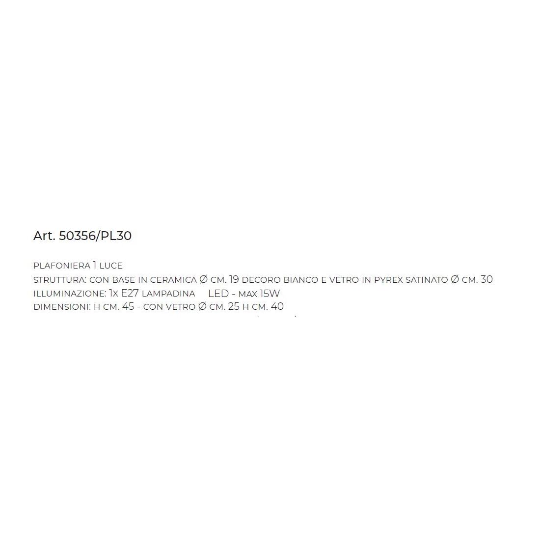 50356/PL30PLAFONIERA IN CERAMICA BIANCA CON SFERA IN VETRO BIANCO D30 CM STILE RUSTICO MADE IN ITALY DELLA IMAS