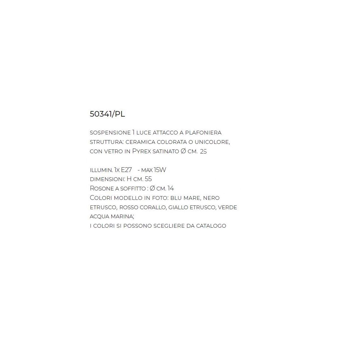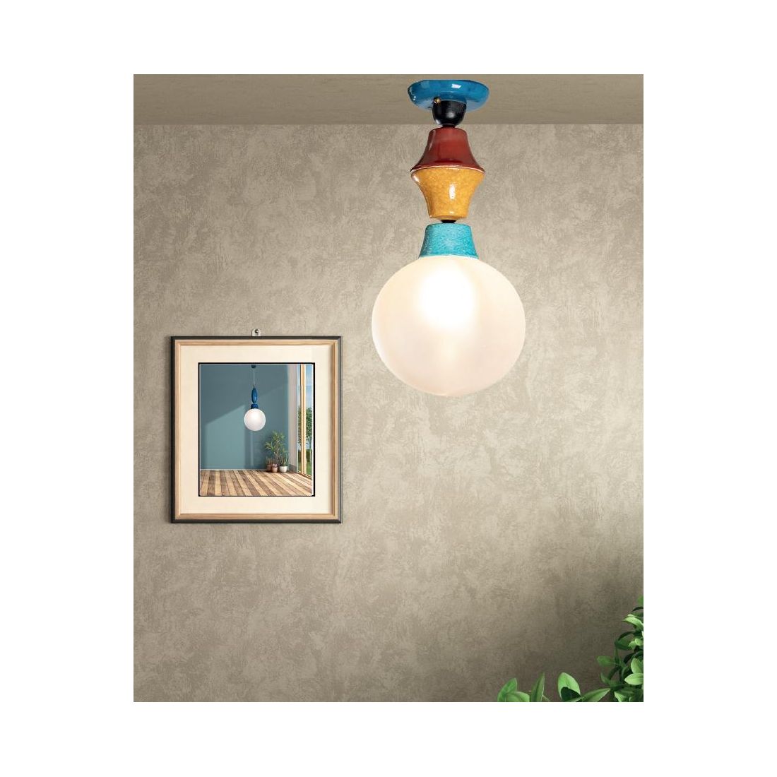 50341/PLPLAFONIERA IN TERRACOTTA COLORATA CON SFERA IN VETRO D25 CM MADE IN ITALY DELLA IMAS FIRENZE