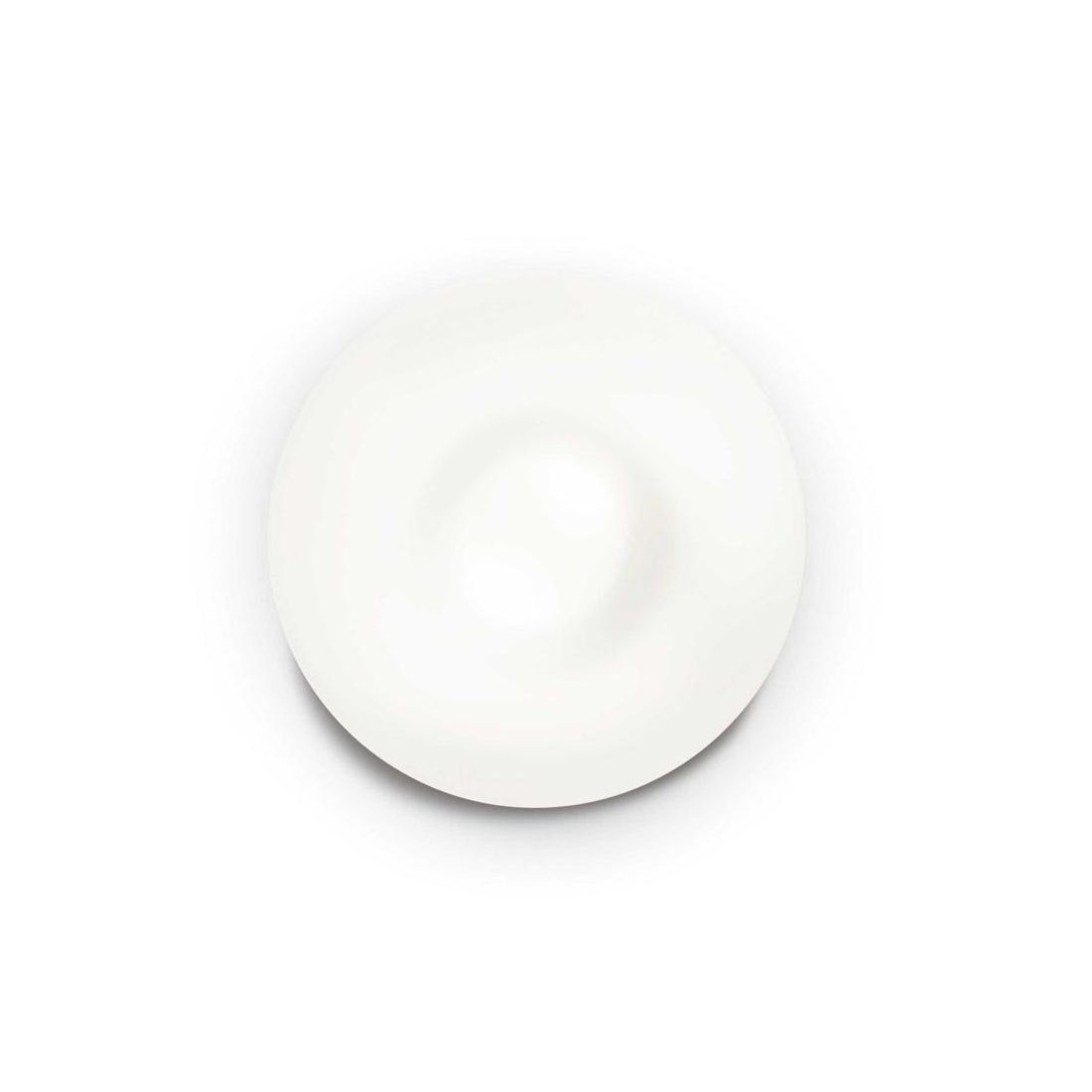 Plafoniera dal design moderno composta da una montatura in metallo con una finitura in nickel satinato e dal diffusore, di forma ovale schiacciato realizzato in vetro bianco soffiato e acidato.