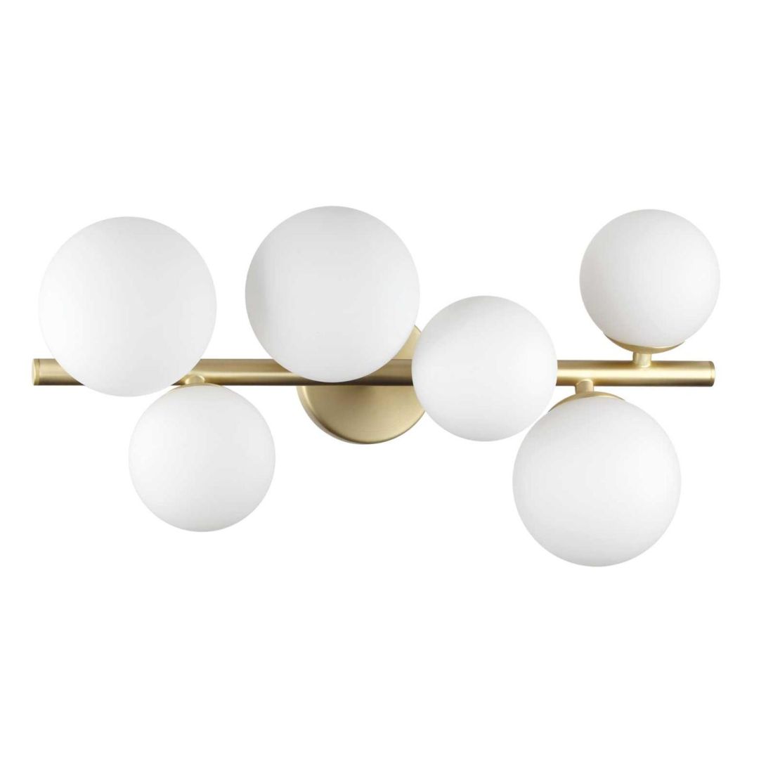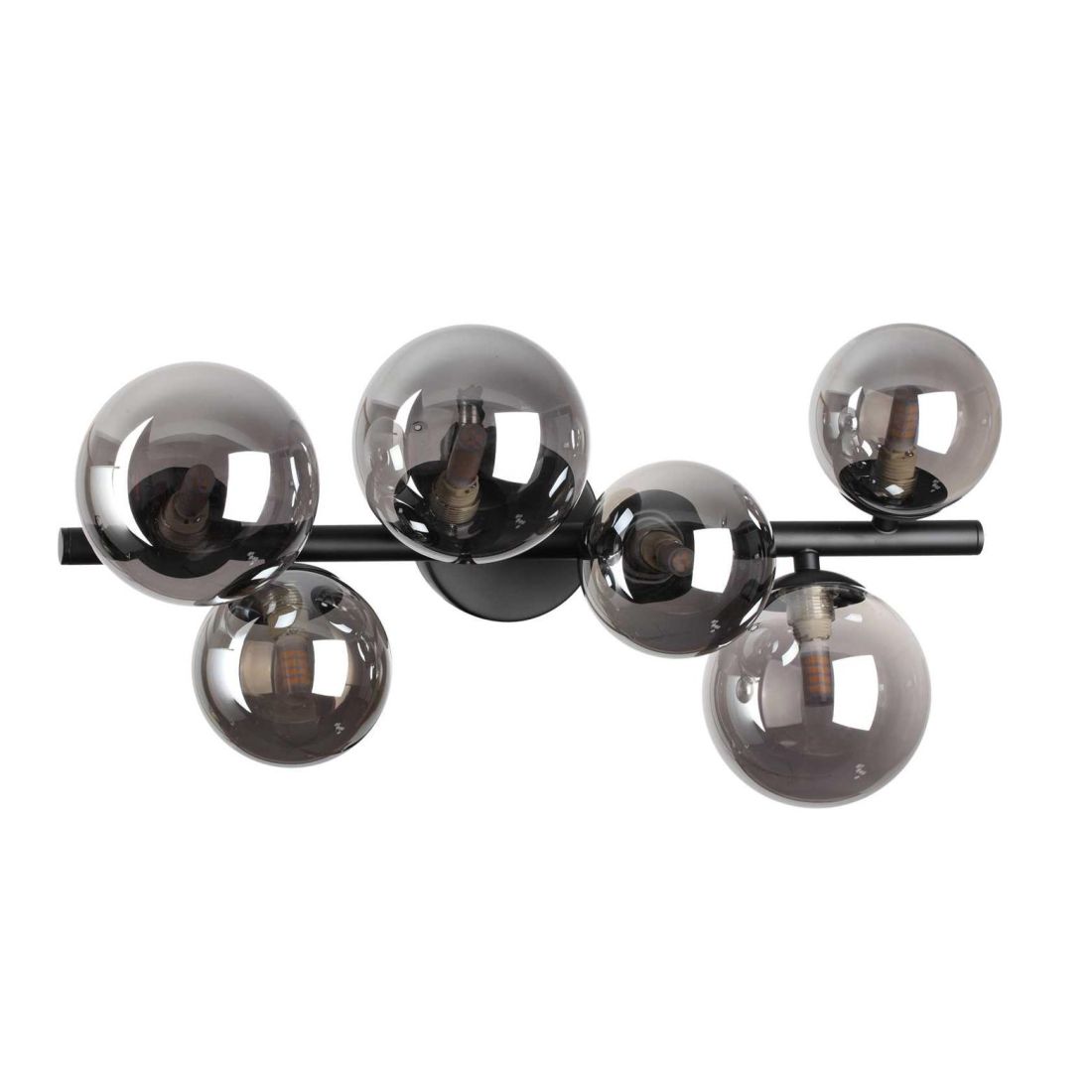 SOSPENSIONE VERTICALE MODERNA IN METALLO CON 6 SFERE IN VETRO FUME, BIANCO O AMBRA...