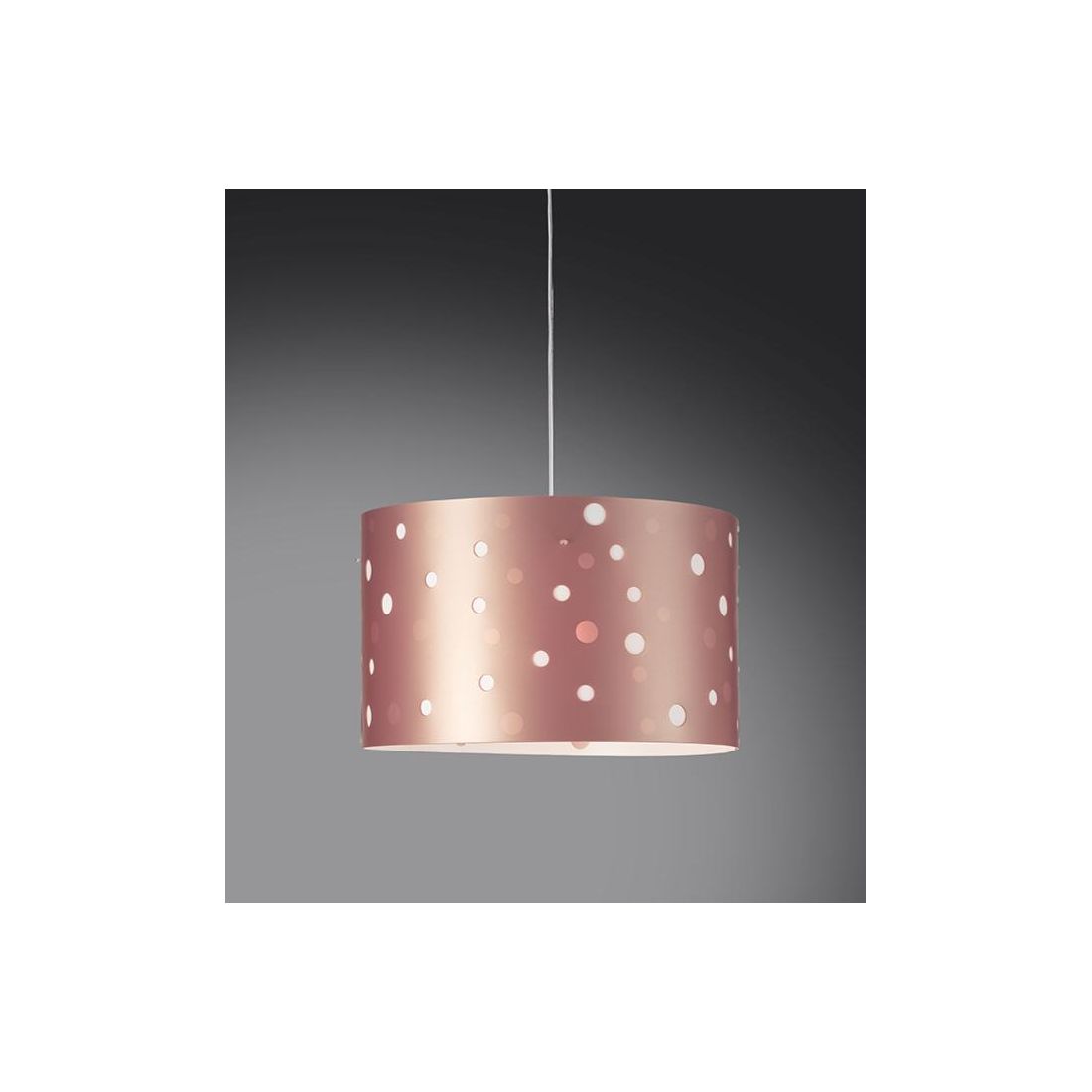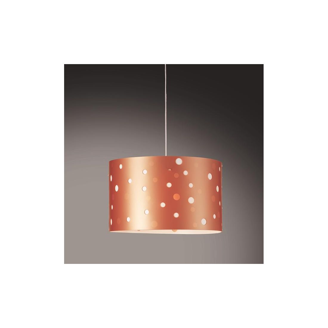 Disponibile in 8 diverse varianti di colore, impreziositi da Pois di varie dimensioni: Argento - Oro - Rame - Rosa - Arancio - Azzurro - Bianco - Verde; dotato di cavo elettrico regolabile in lunghezza in modo da poter posizionare il punto luce dove più vi necessita.