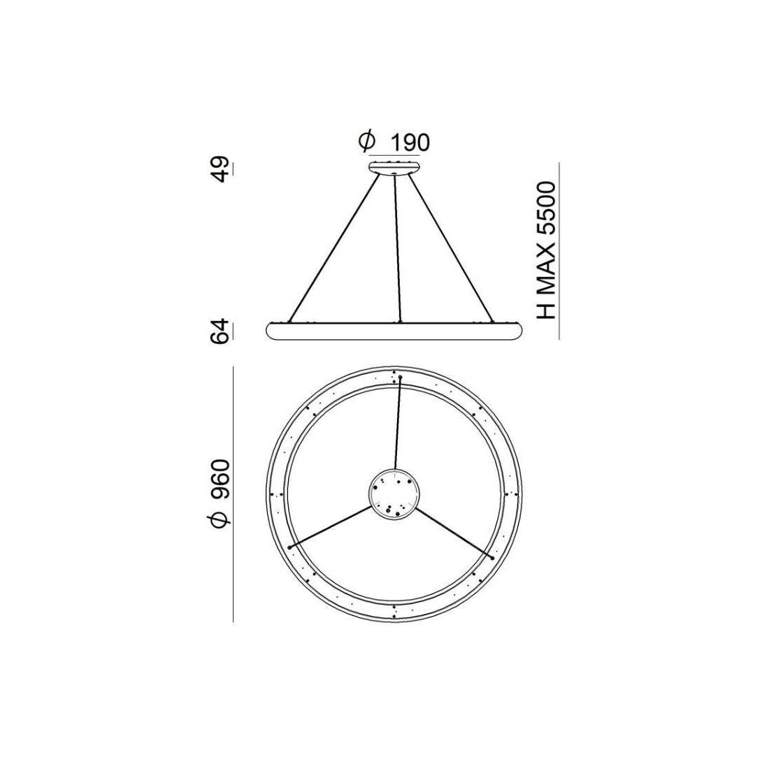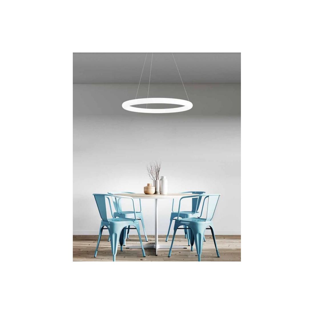 Il design minimale di questo lampadario è adatto ad illuminare spazi domestici moderni come ad esempio la cucina, il soggiorno, salotto, camera da letto oppure l'ufficio; la sorgente luminosa LED da 31w, di colore bianco caldo, con distribuzione luminosa General Lighting, è composta da 1 LED topled, con una CCT 3000 K ed un CRI 80; il flusso luminoso della sorgente è di 6080 lm, con un'efficienza nominale di 132.2 lm/W.