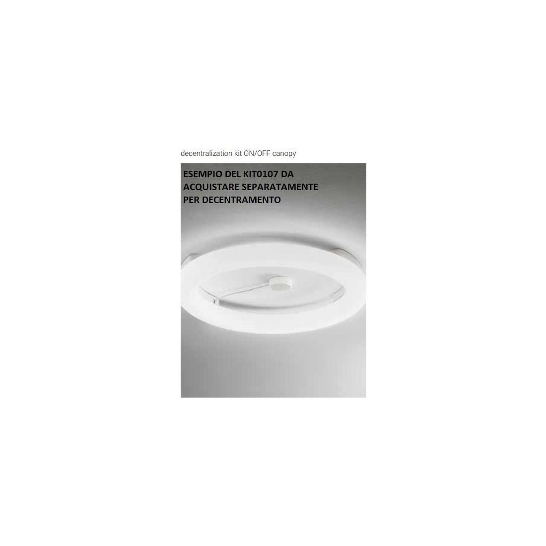 L'alimentazione on/off di questa plafoniera è posto su un lato del bordo della circonferenza dell'anello quindi, se avete bisogno di decentralizzare il punto luce, dovrete acquistare separamente il KIT0107 (che potete vedere in foto), presente sul nostro sito web.