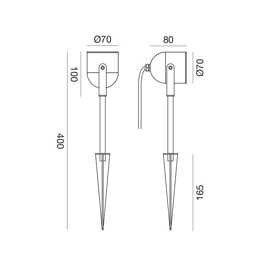 Versione 40 cm, ideale per un'illuminazione radente su aiuole, piccoli arbusti e dettagli bassi del paesaggio;