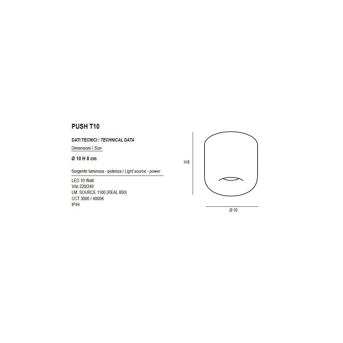 E' dotata di sorgente luminosa integrata con Led da 10w capace di generare un flusso luminoso di 1100 lumen; inoltre è dotata di interruttore CCT che consente di selezionare, in fase di montaggio, la temperatura della luce tra un'accogliente tonalità bianca calda 3000K o una più limpida luce bianca naturale 4000K, adattandola alla funzione della stanza. Inoltre il suo grado di protezione IP44 la rende resistente agli schizzi d’acqua e ai piccoli corpi solidi assicurandone l’affidabilità in contesti con elevata umidità come il bagno.