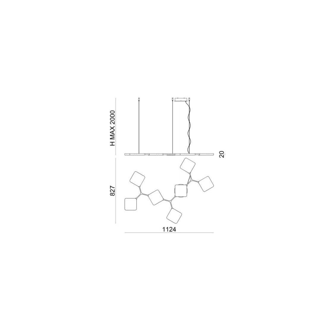 QUAD P12 SOSPENSIONE 12 LUCI DIMMERABILE LED 89W LUCE 3000K BIANCA O NERA ORIGINALE E...