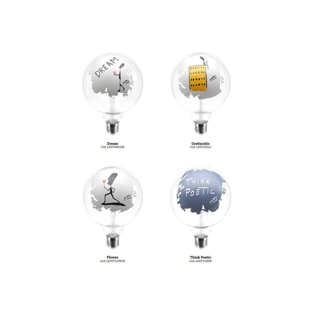FUNNY LAMPADINE TATTOO GLOBO LED 4,5W LUCE 2700K DECORATE MADE IN ITALY