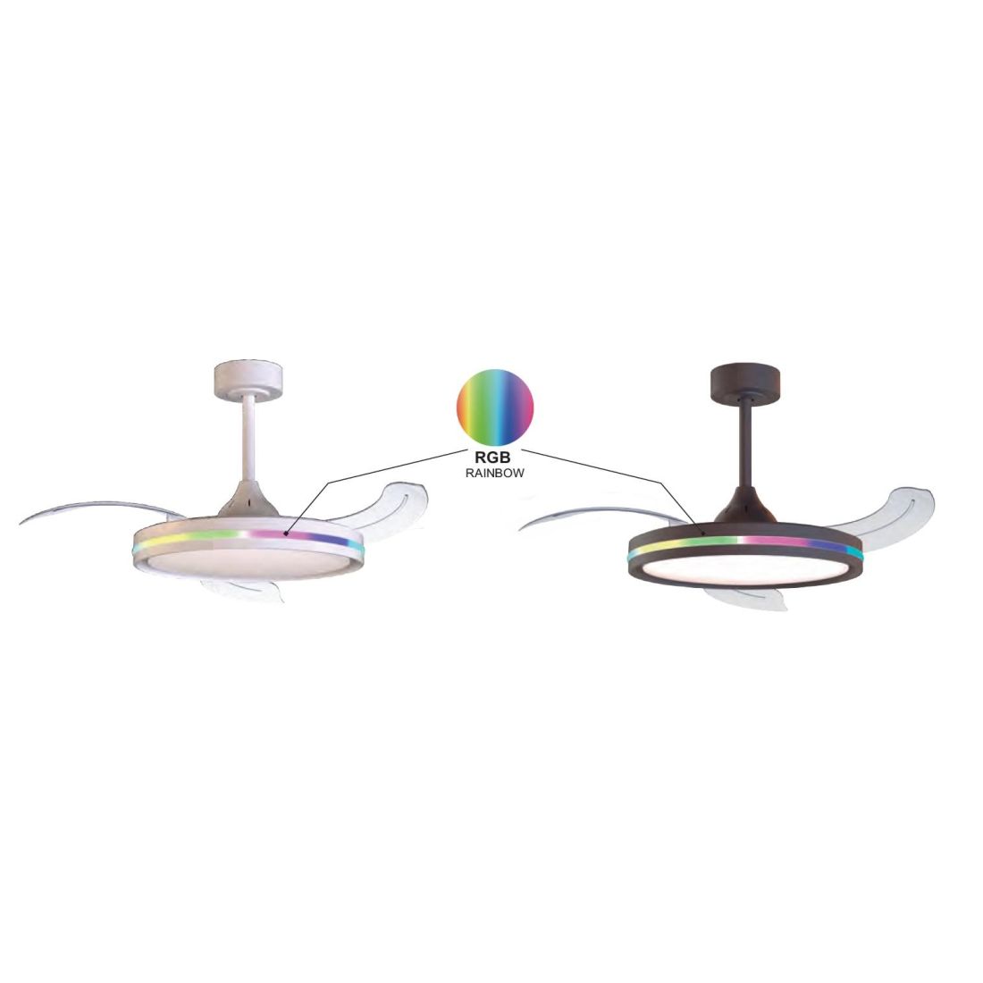 RAFAGARAFAGA VENTILATORE MODERNO D106 CM LED 50W DIMMERABILE TECNOLOGIA RGB TELECOMANDO INCLUSO 2 COLORI