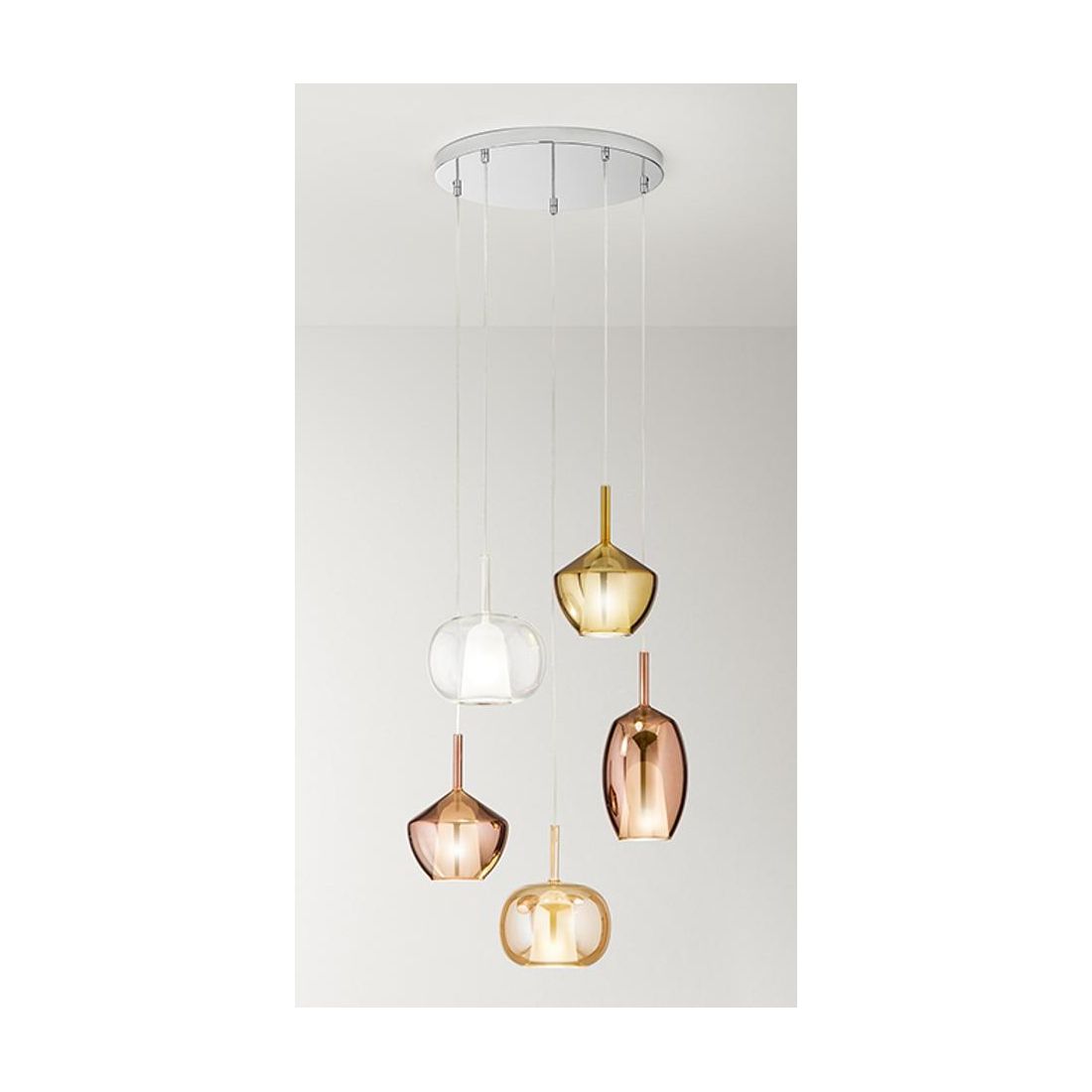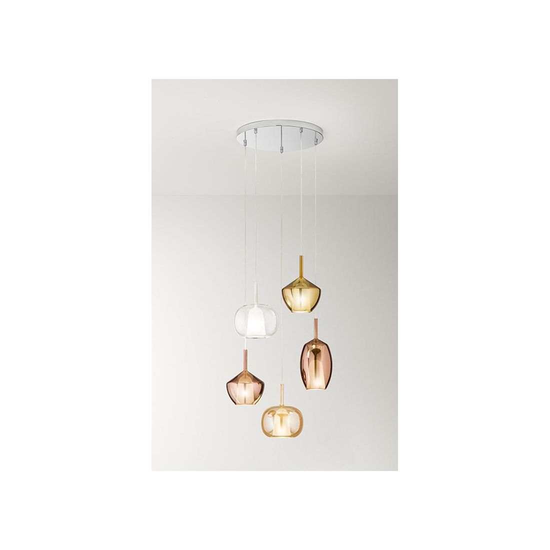 RAIN SOSPENSIONE LINEARE 5 LUCI BASE NERA CON DIFFUSORI IN VETRO RAME SPECCHIATO MODERNA
