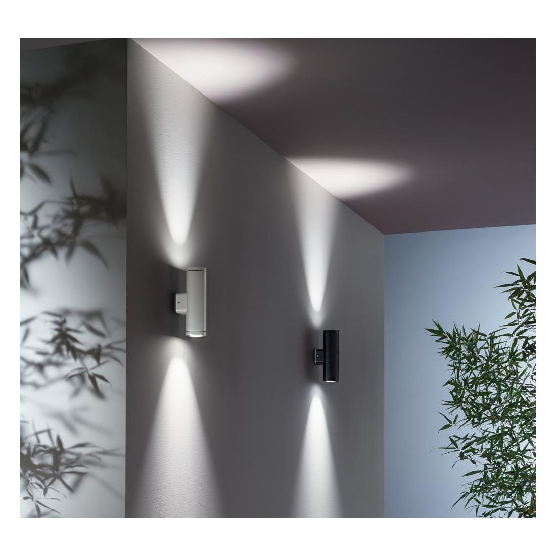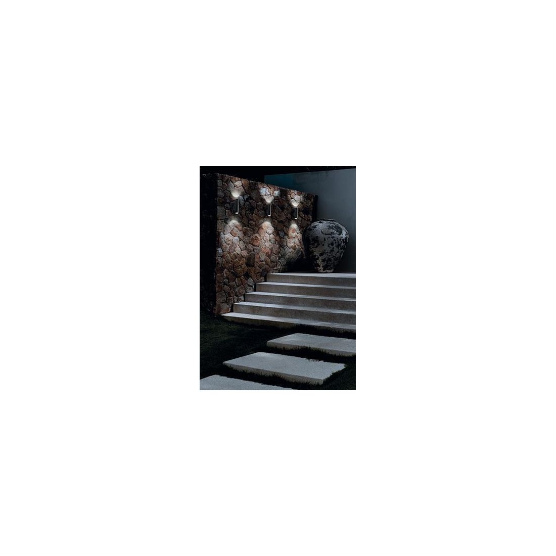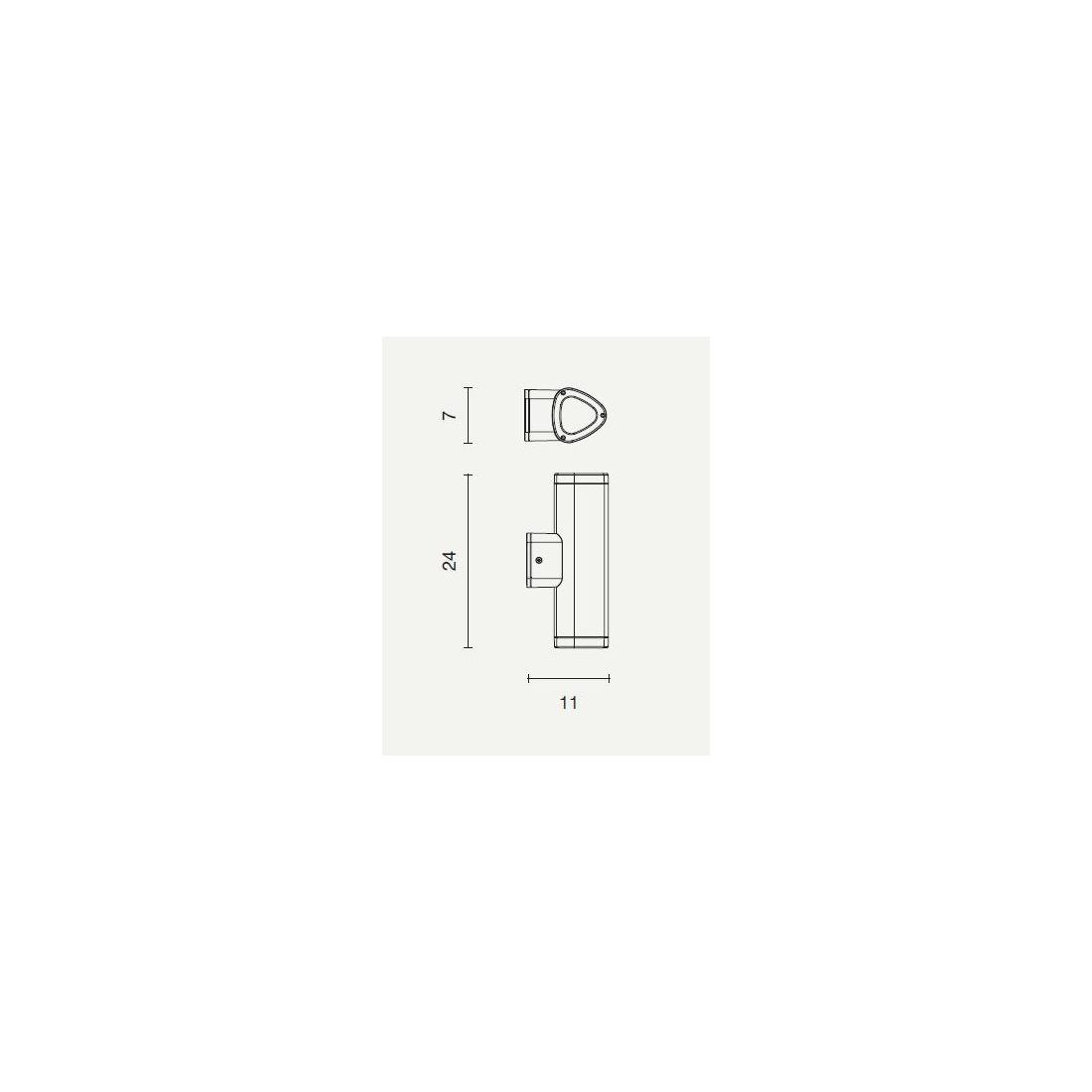 Applique da esterni realizzata in alluminio con diffusori in vetro, con proiezione della luce sia verso il basso che verso l'alto, disponibile nei colori NERO e ARGENTO.