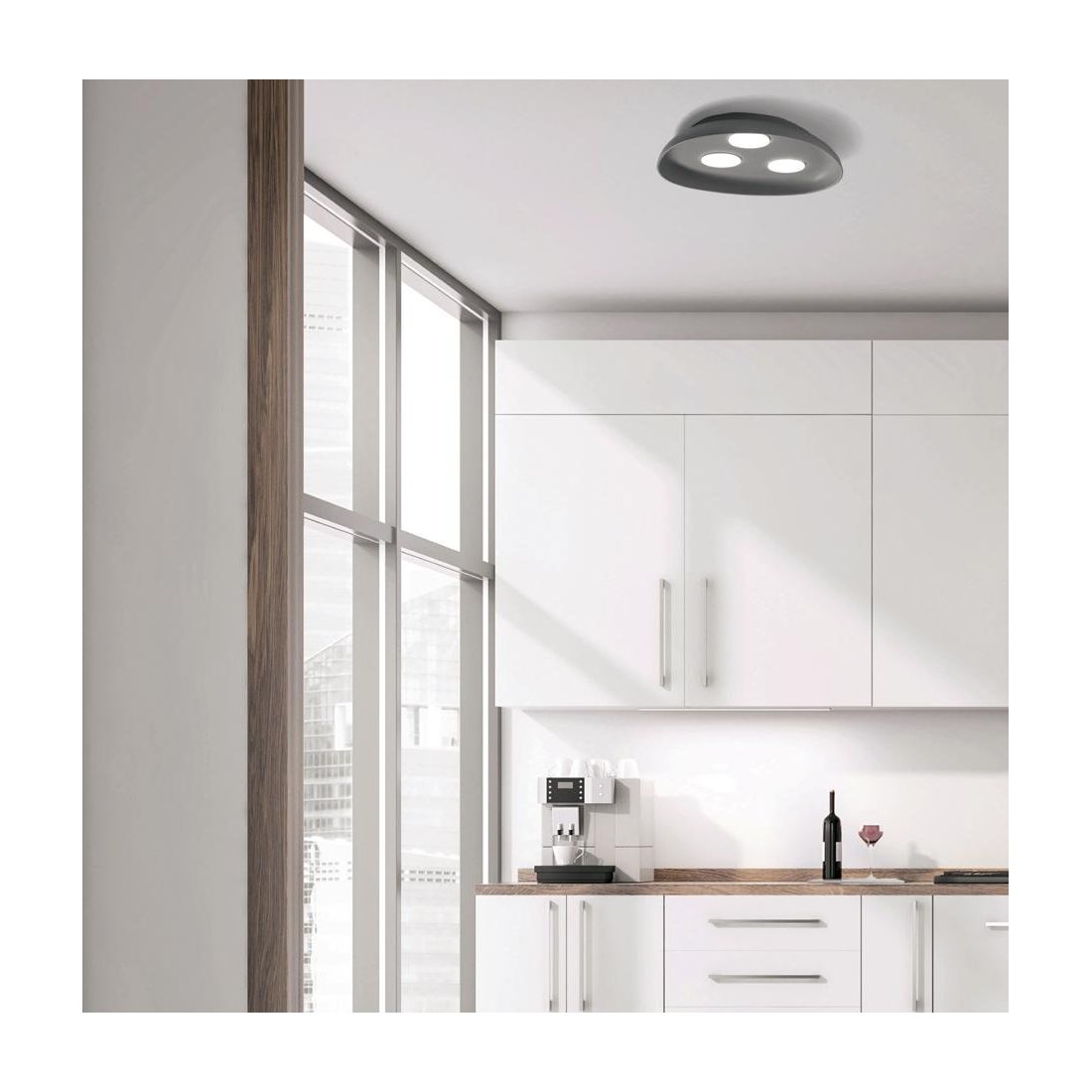 La lampada è dotata di 3 portalampade con attacco GX53 dove è possibile inserire qualsiasi lampadina Led, di nuova generazione, nel colore e nella potenza che più vi necessita.