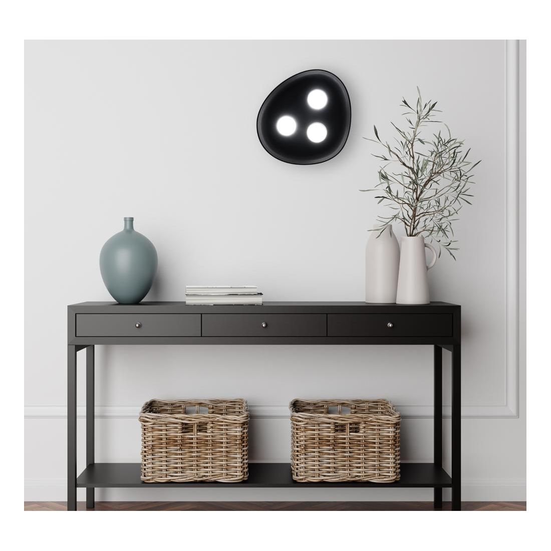 La lampada da parete o da soffitto a 3 luci, che viene realizzata in ceramica e levigata fino a ottenere una superficie vellutata ed è disponibile in quattro tonalità senza tempo: Bianco, Nero, Rosa e Grigio. La lampada Reloaux unisce la purezza della ceramica a un design gentile regalando una luce diffusa e uno stile discreto a ogni ambiente.