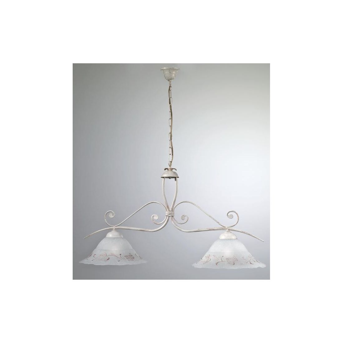 RICCIO BILANCIERERICCIO BILANCIERE 2 LUCI IN METALLO AVORIO ANTICO CON DIFFUSORI IN VETRO DECORATO