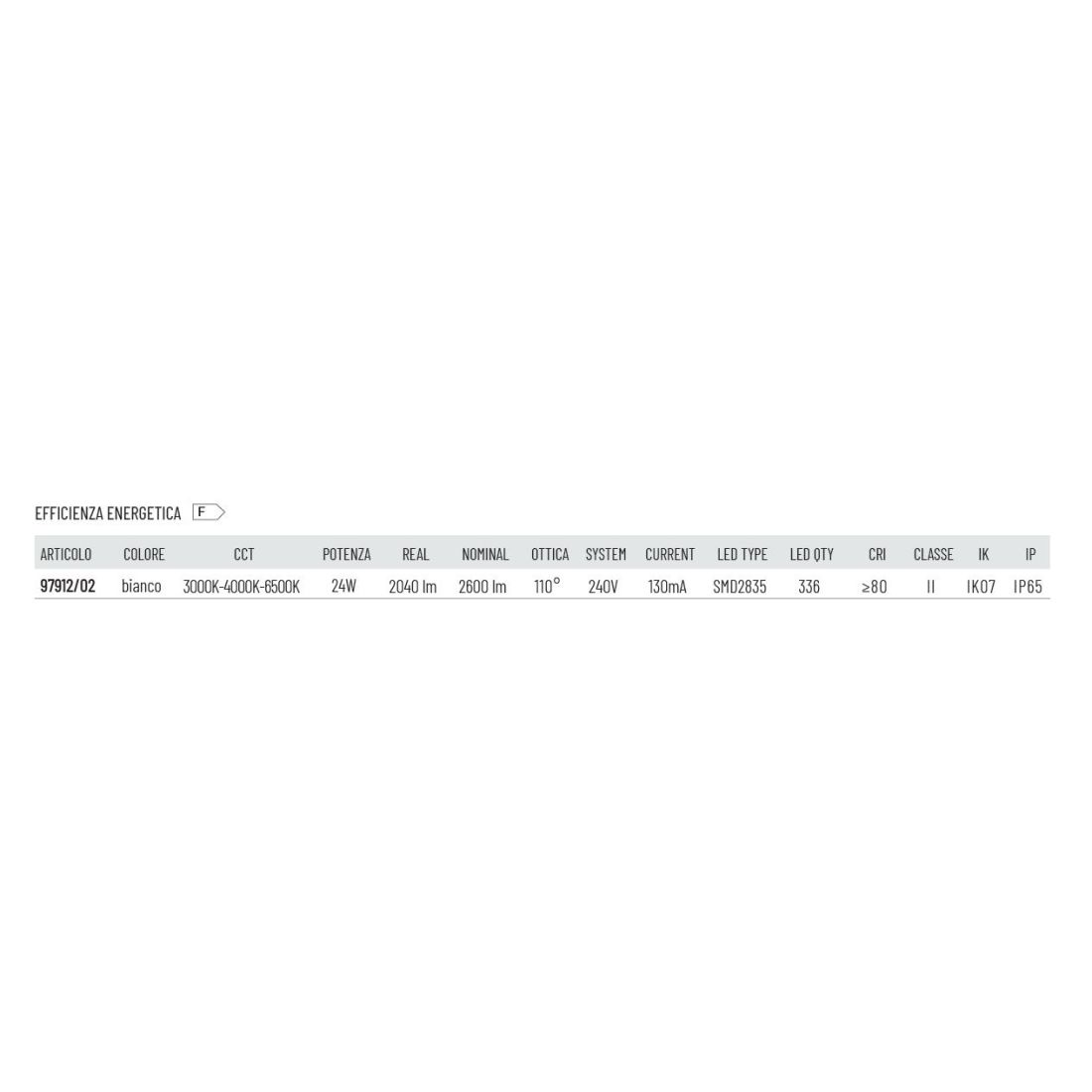 Questo prodotto è equipaggiato con modulo LED da 24W e, grazie all'interruttore CCT di cui è dotata la lampada, è possibile impostare, al momento dell' installazione, la temperatura colore del Led che più vi piace: luce bianca calda (3000K), luce bianca naturale (4000K) oppure luce fredda (6500K). La possibilità di selezionare la tonalità della luce rende questa plafoniera una soluzione completa per ogni esigenza di illuminazione sia interna che esterna.