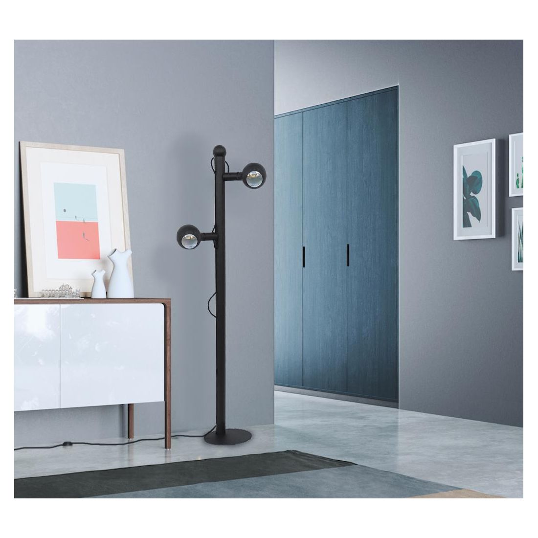 La piantana viene fornita completa di cavo colorato e di 2 lampadine con attacco E27 del mod. Camo, in tinta con la struttura, facente parte della collezione Filotto, da 7w Led cadauna con resa luminosa di 806 lumen cad. e una luce calda 2700k.