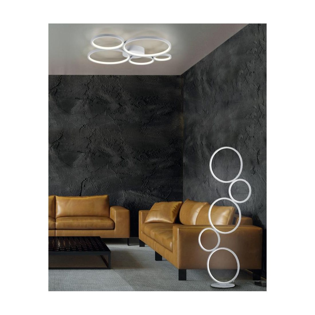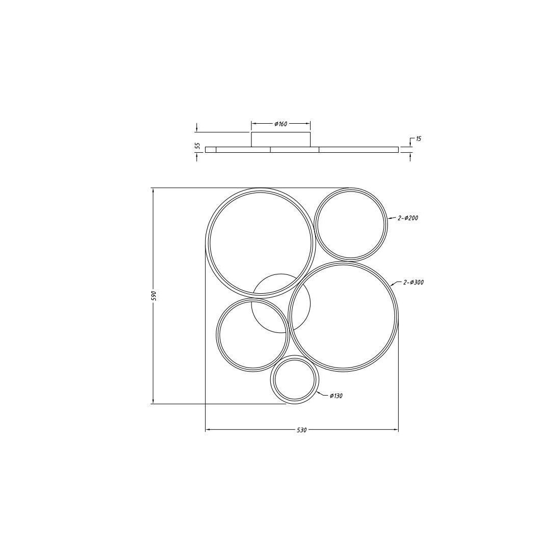 RONDO PLAFONIERA A 4 CERCHI CON LED 37W MODERNA LUCE 3000K DIMMERABILE METALLO 2 FINITURE