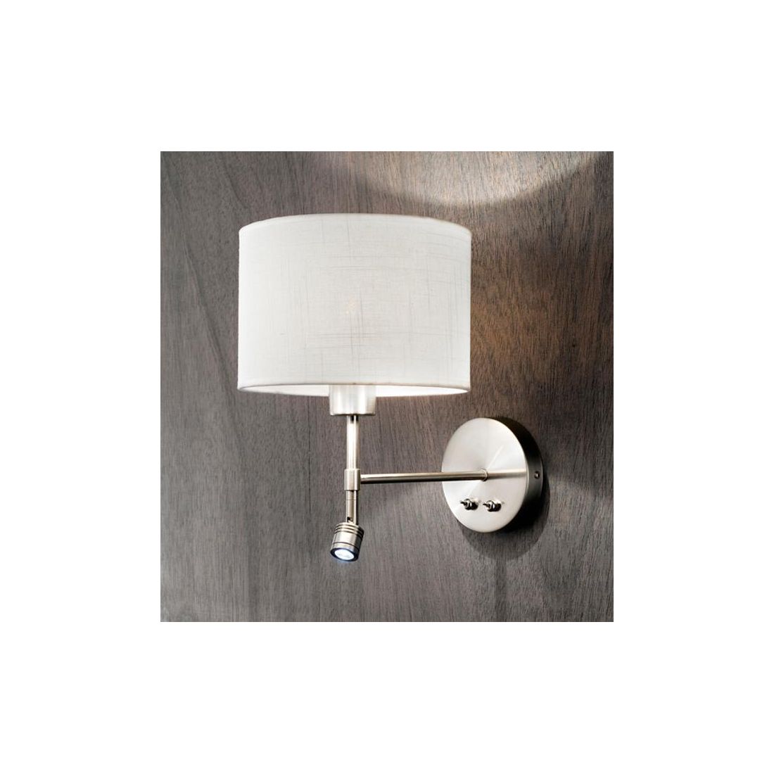 ROUND HOTEL LAMPADA DA TAVOLO CROMO CON PARALUME IN TESSUTO BIANCO LAMPADINA E27 DESIGN...