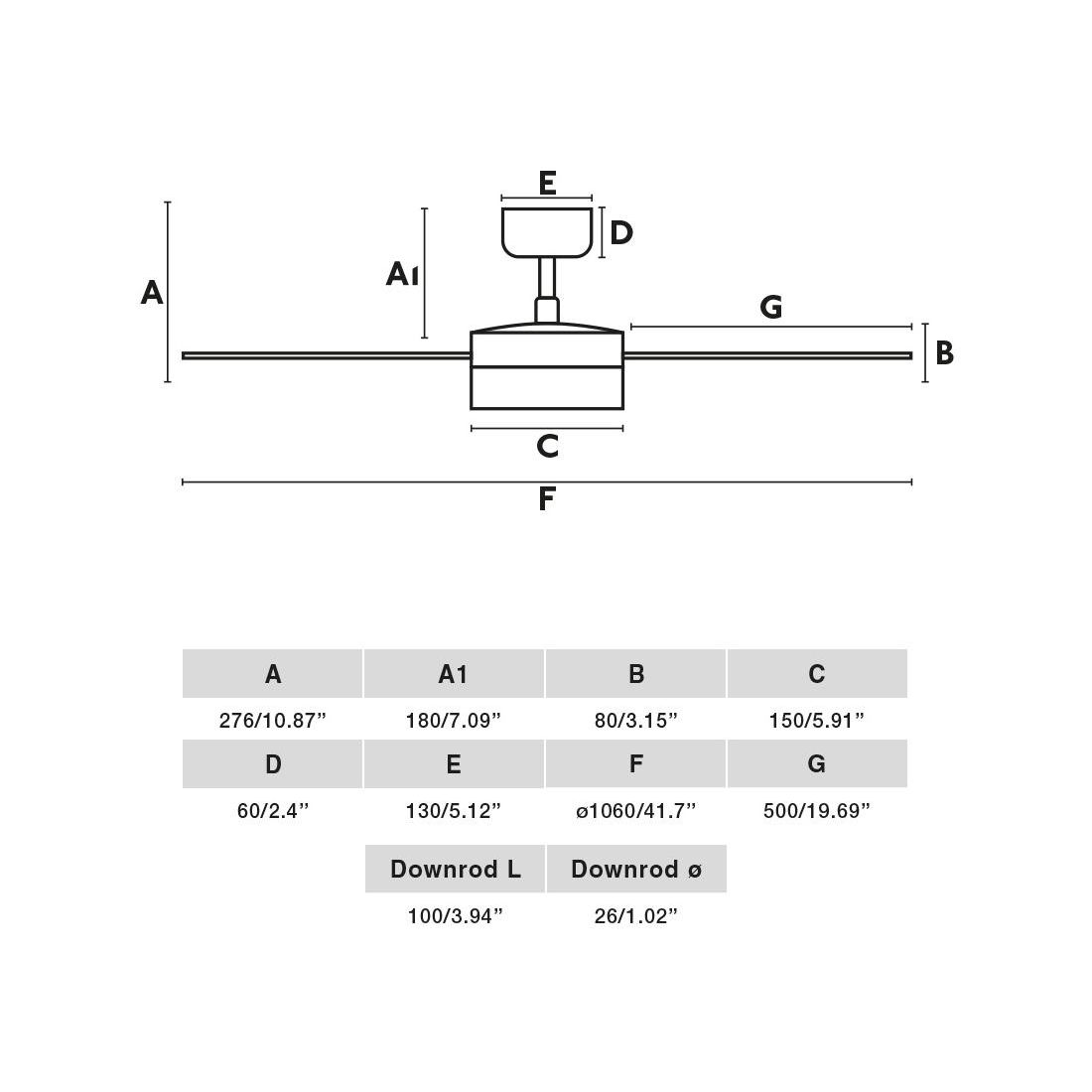 Con un diametro di 106 cm, questo modello è pensato per ventilare in modo efficace stanze fino a 13 m², come soggiorni, camere da letto, cucine, uffici e studi professionali e il suo design tecnico consente l’installazione anche su soffitti inclinati offrendo la massima flessibilità.